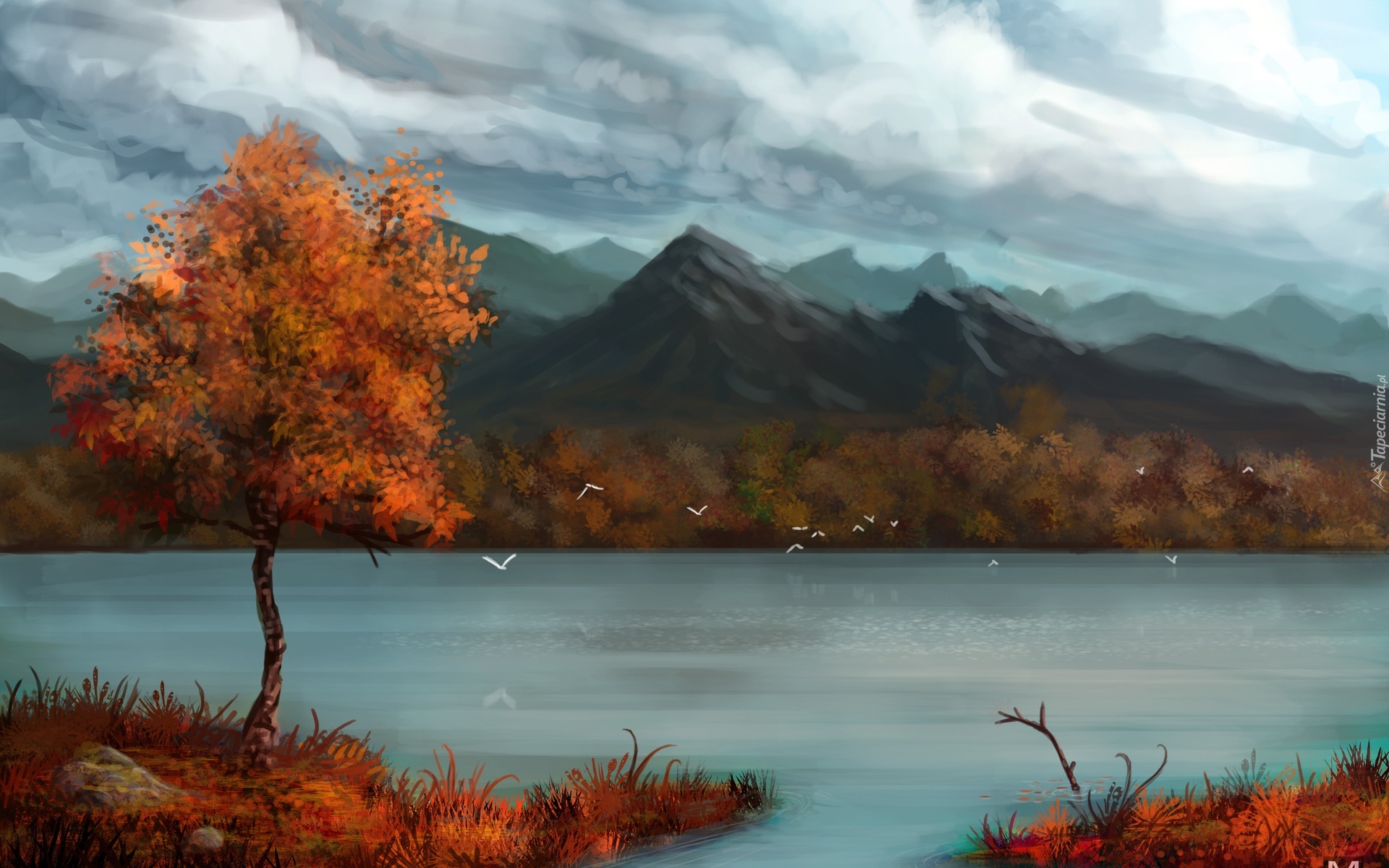 Edytor tapety: Jezioro, Góry, Drzewo, Jesień