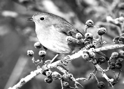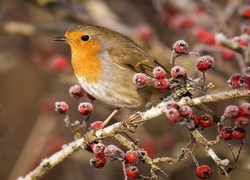 Edytor tapety: Ptaszek, Rudzik, Gałąź, Jarzębiny