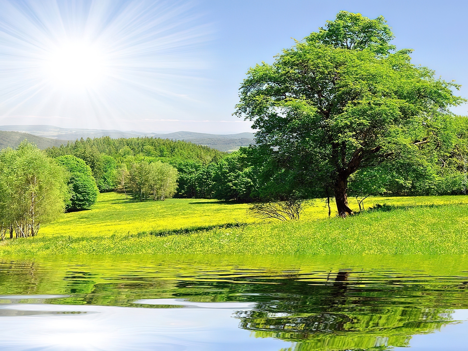 Edytor tapety: Drzewo, Łąka, Słońce, Lato