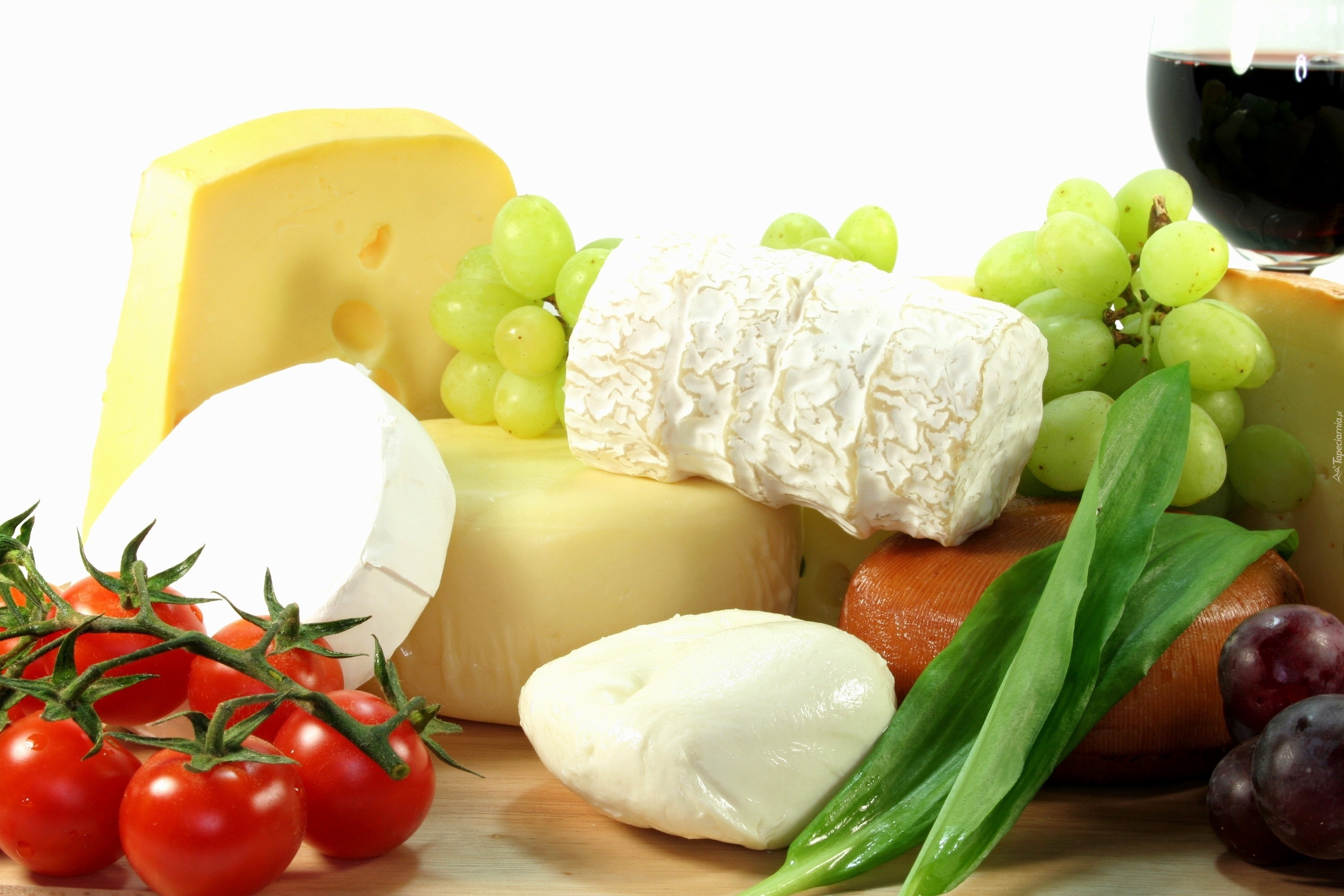 Edytor tapety: Różne, Sery, Nabiał, Winogrona, Pomidory