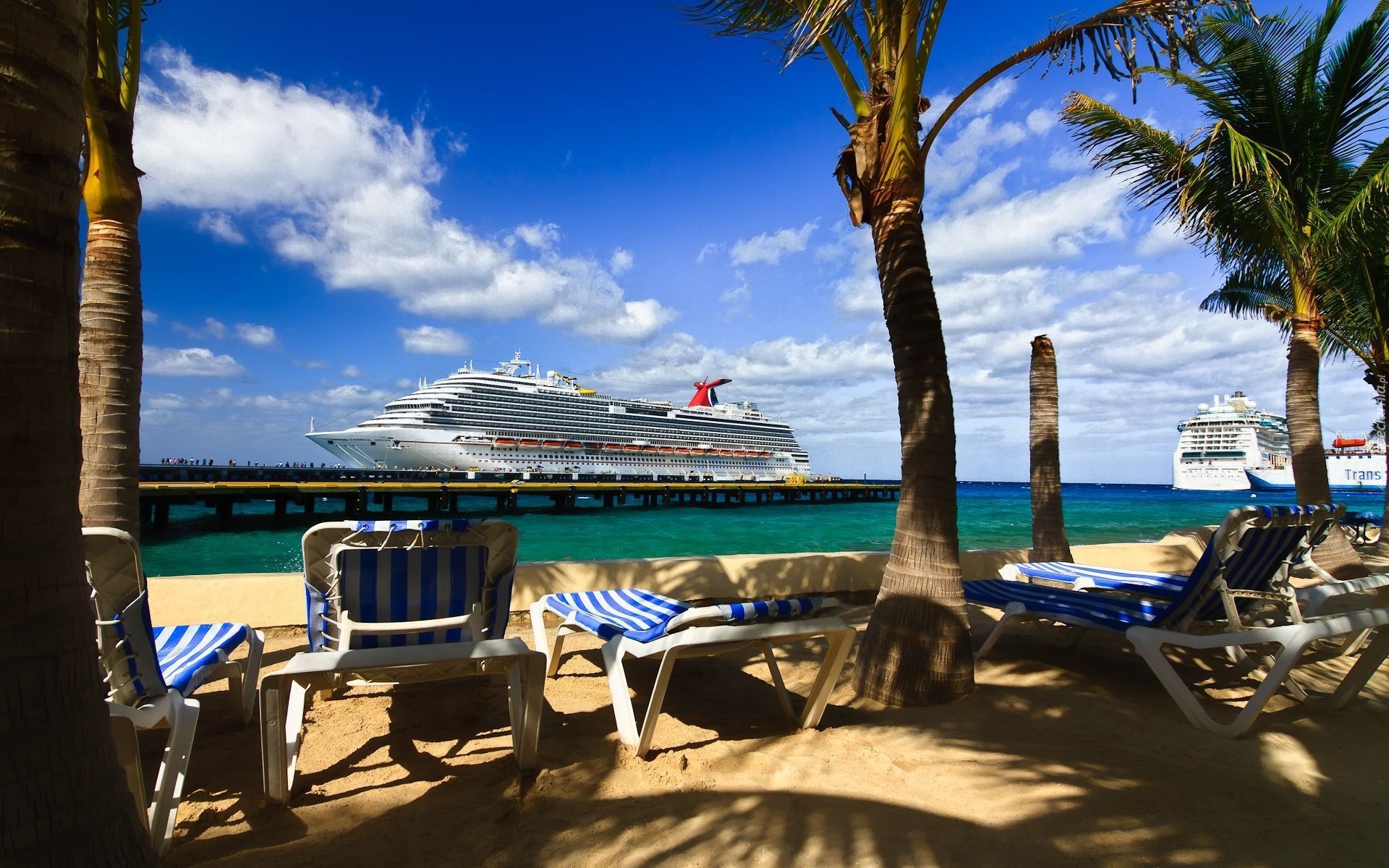 Edytor tapety: Plaża, Leżaki, Statek