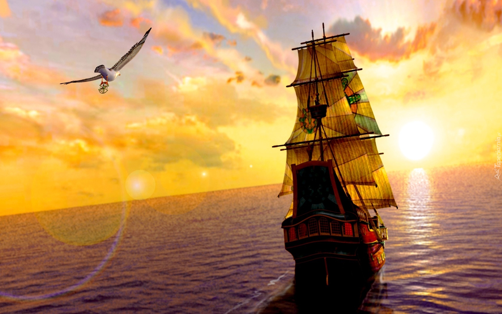 Edytor tapety: Żaglowiec, Morze, Mewa