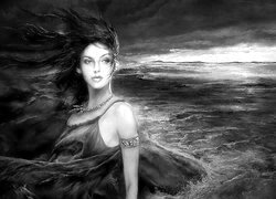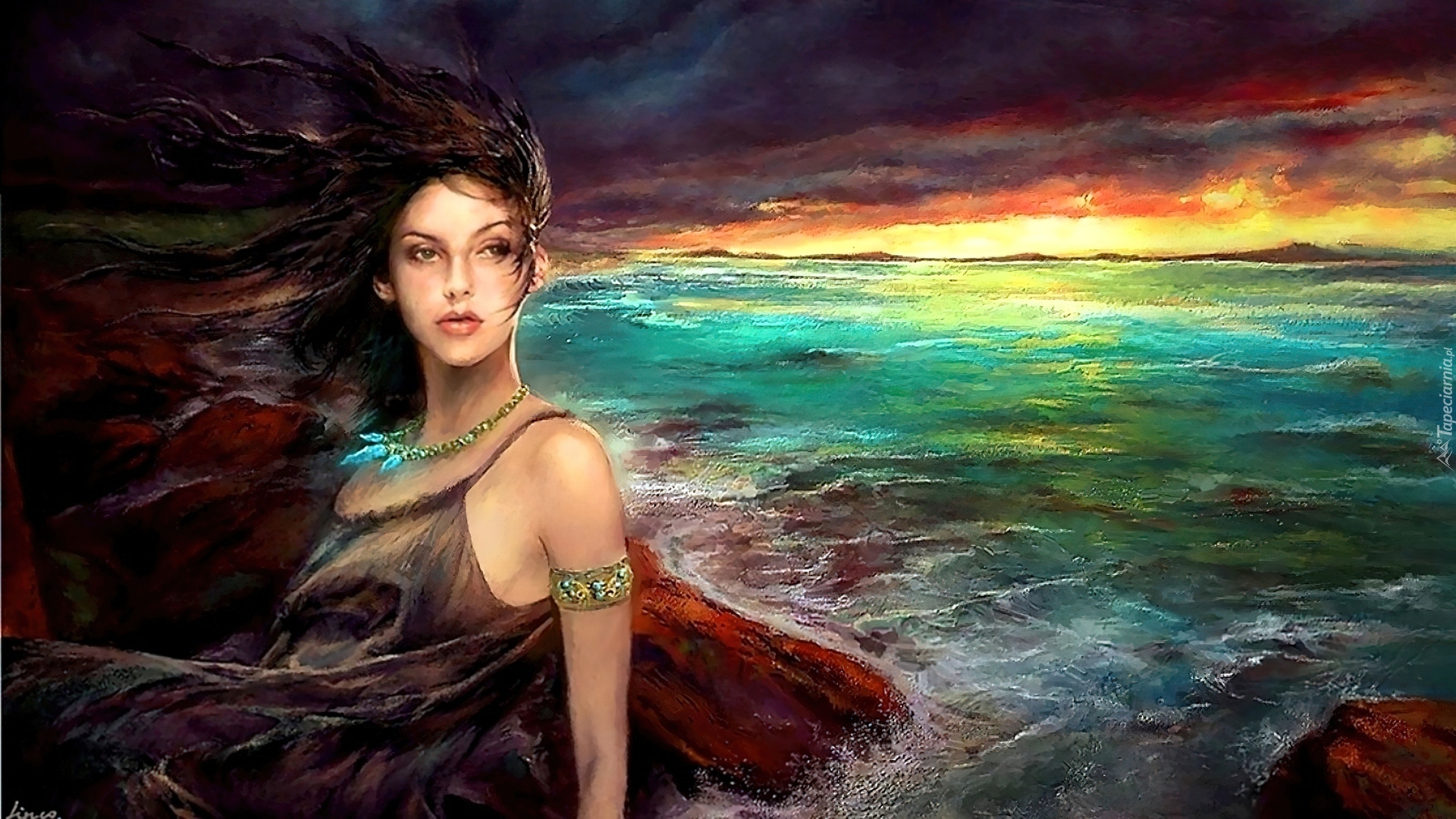Edytor tapety: Kobieta, Zachód, Słońca, Morze, Art