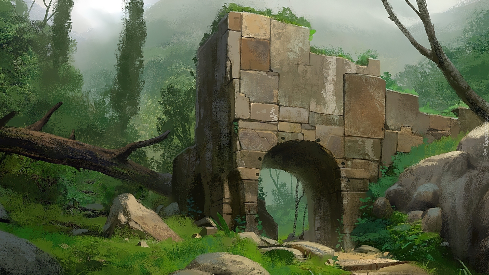 Edytor tapety: Ruiny, Skały, Zieleń