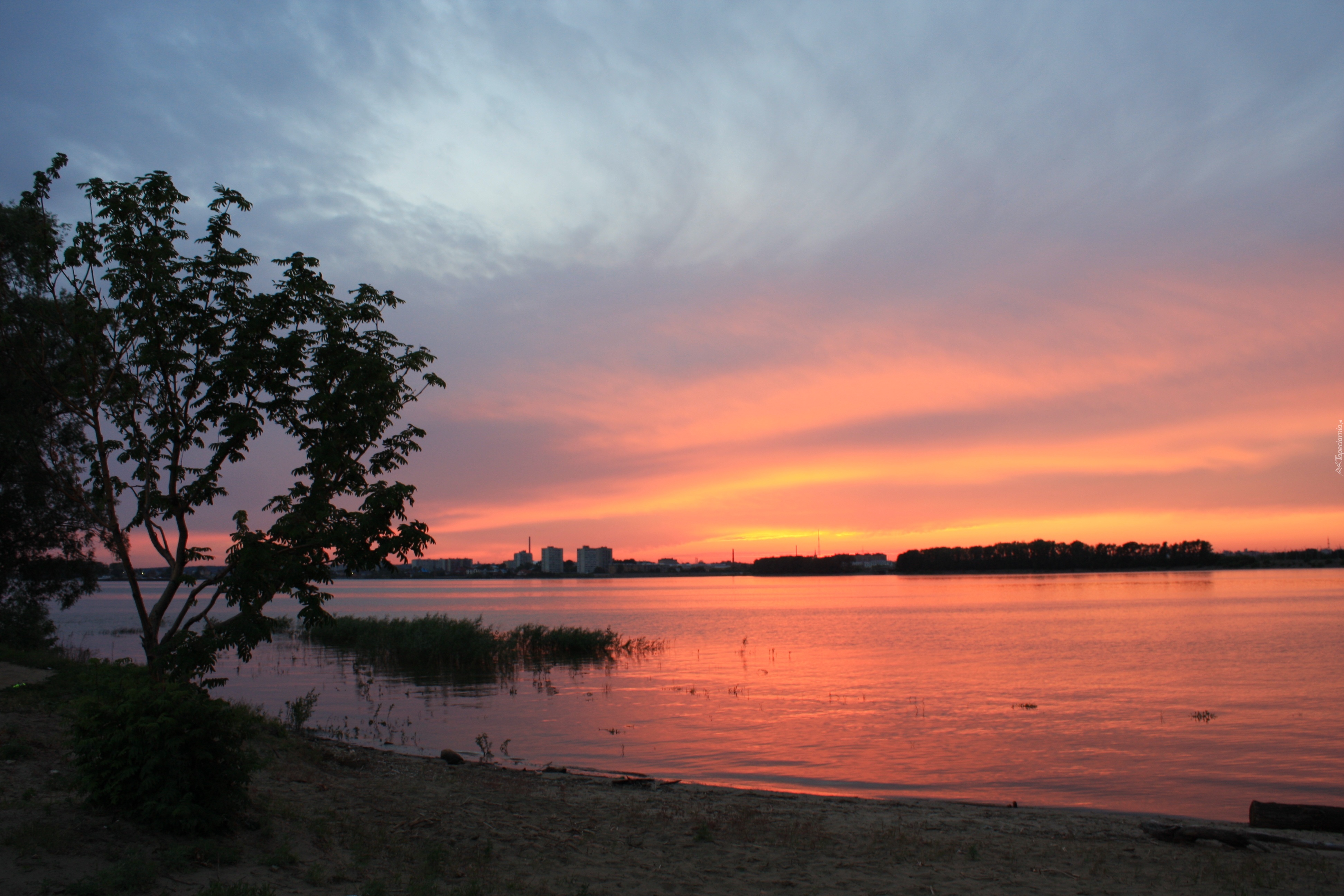 Edytor tapety: Zachód Słońca, Drzewo, Rzeka