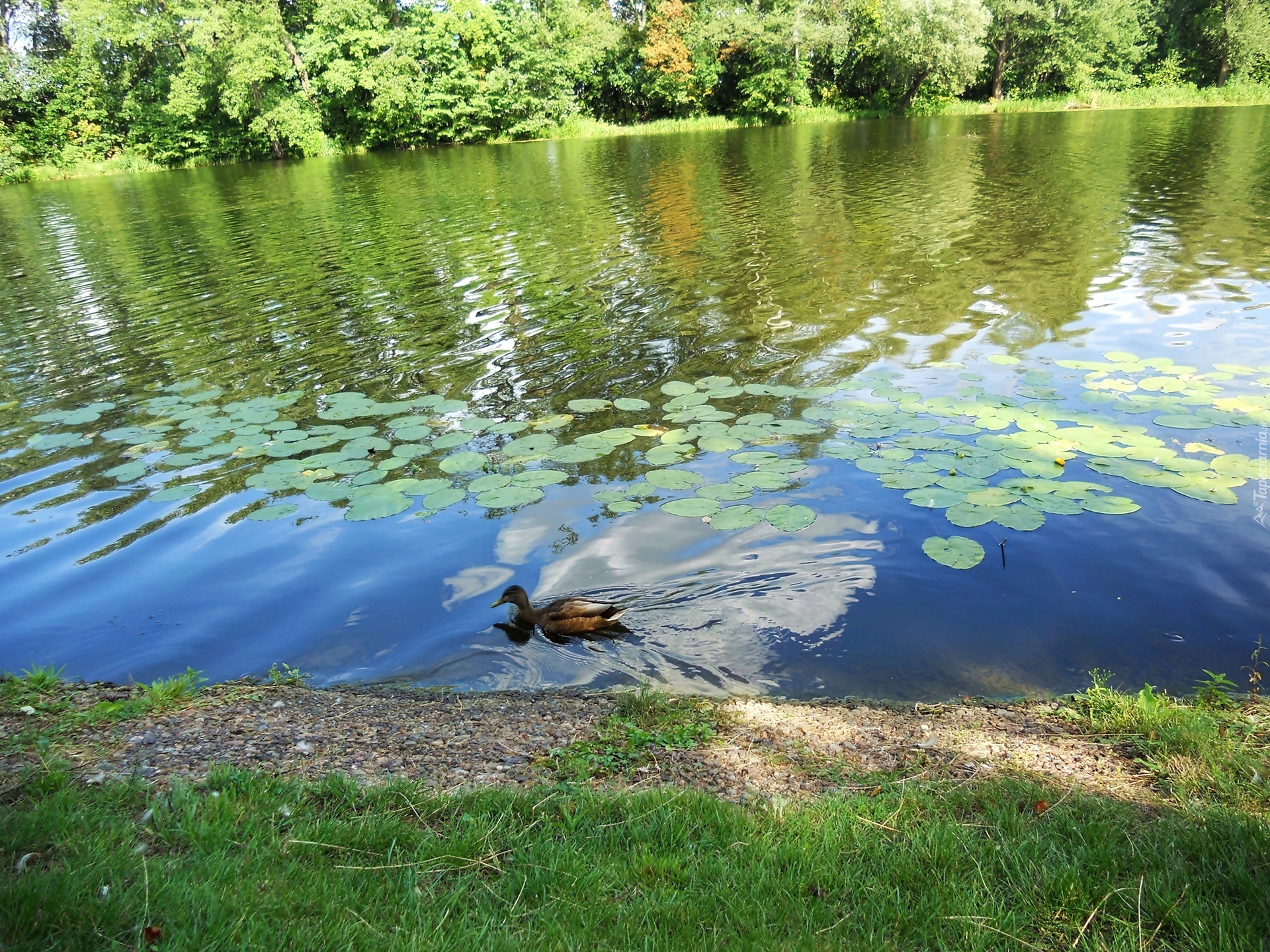 Edytor tapety: Ogród, Woda, Kaczka, Roślinność