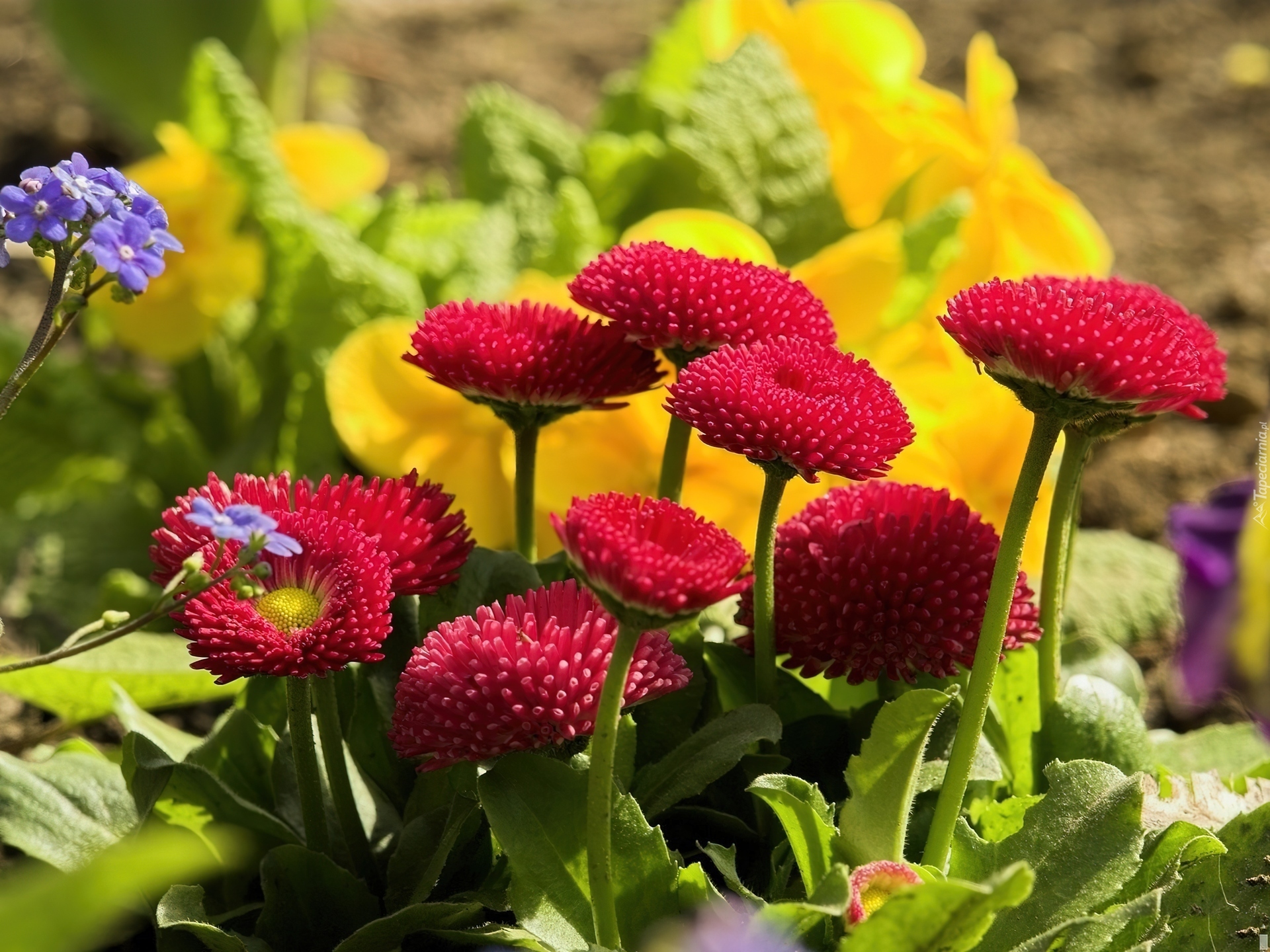 Edytor tapety: Czerwone, Stokrotki, Listki