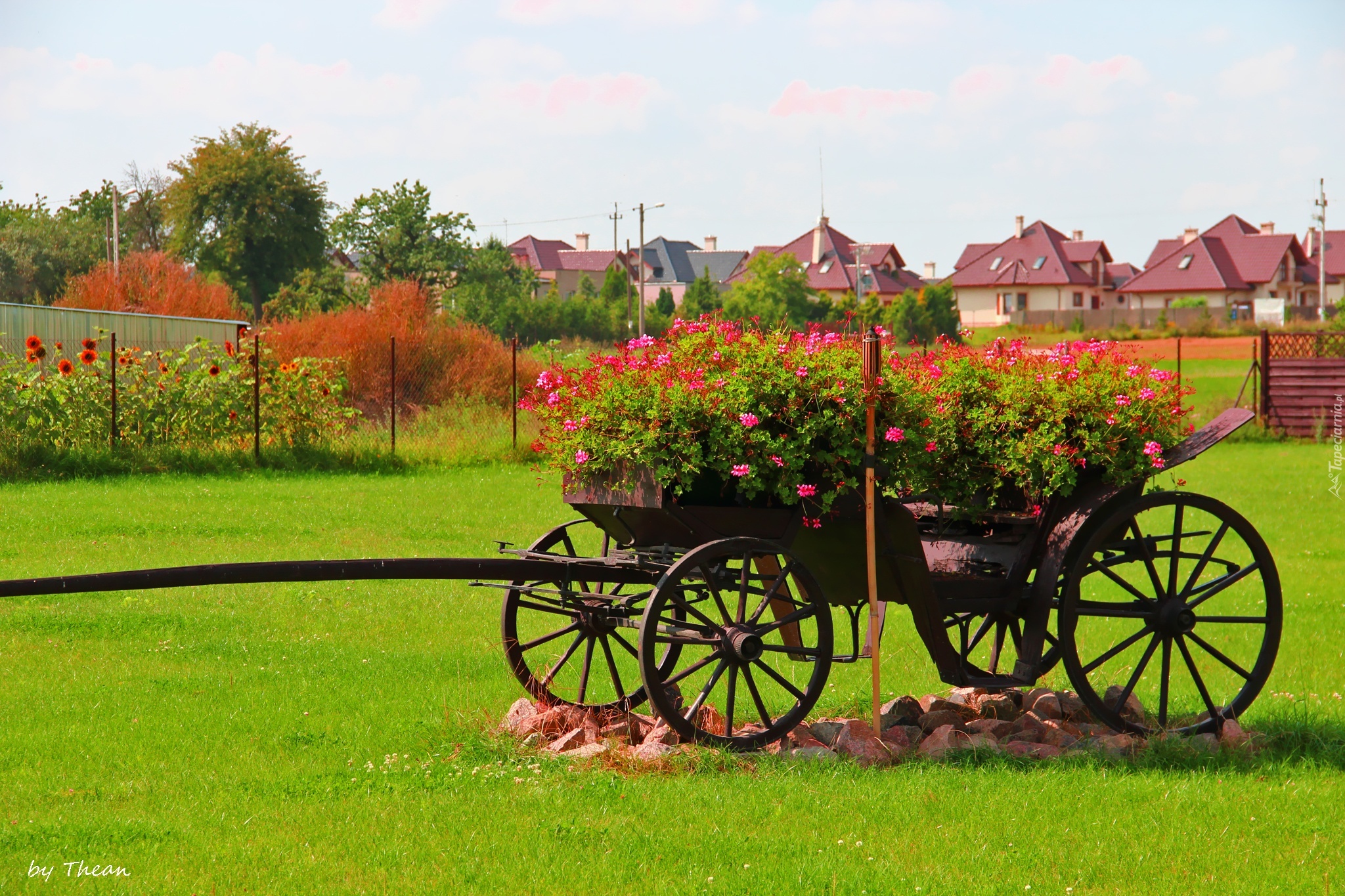 Edytor tapety: Ogród, Kwiaty, Bryczka, Trawa
