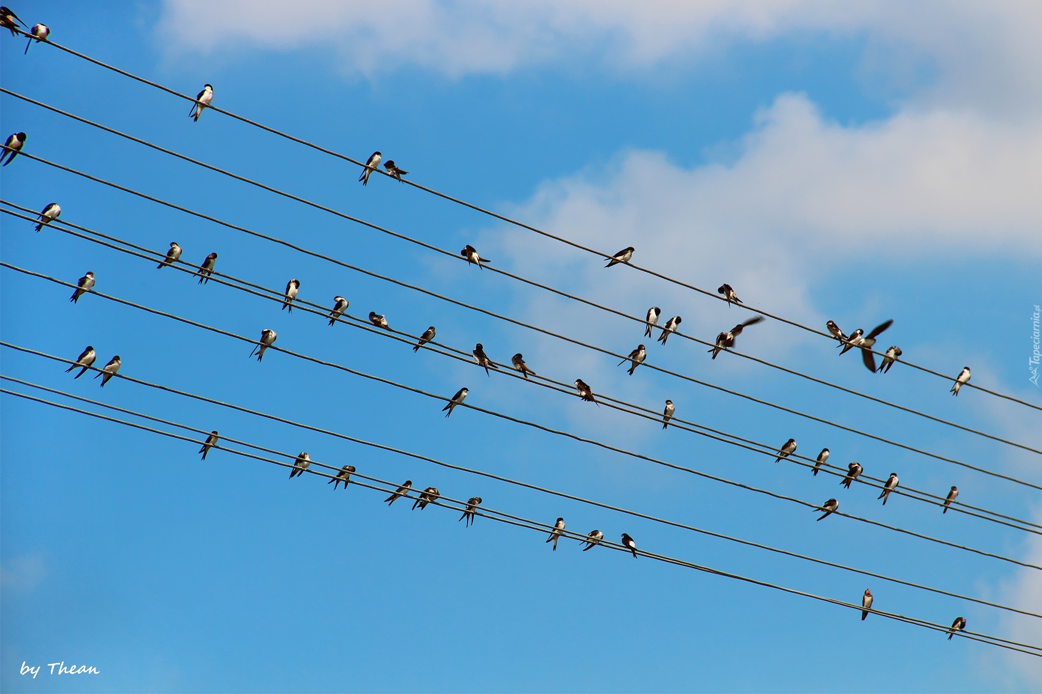 Edytor tapety: Jaskółki, Linie, Wysokiego, Napięcia