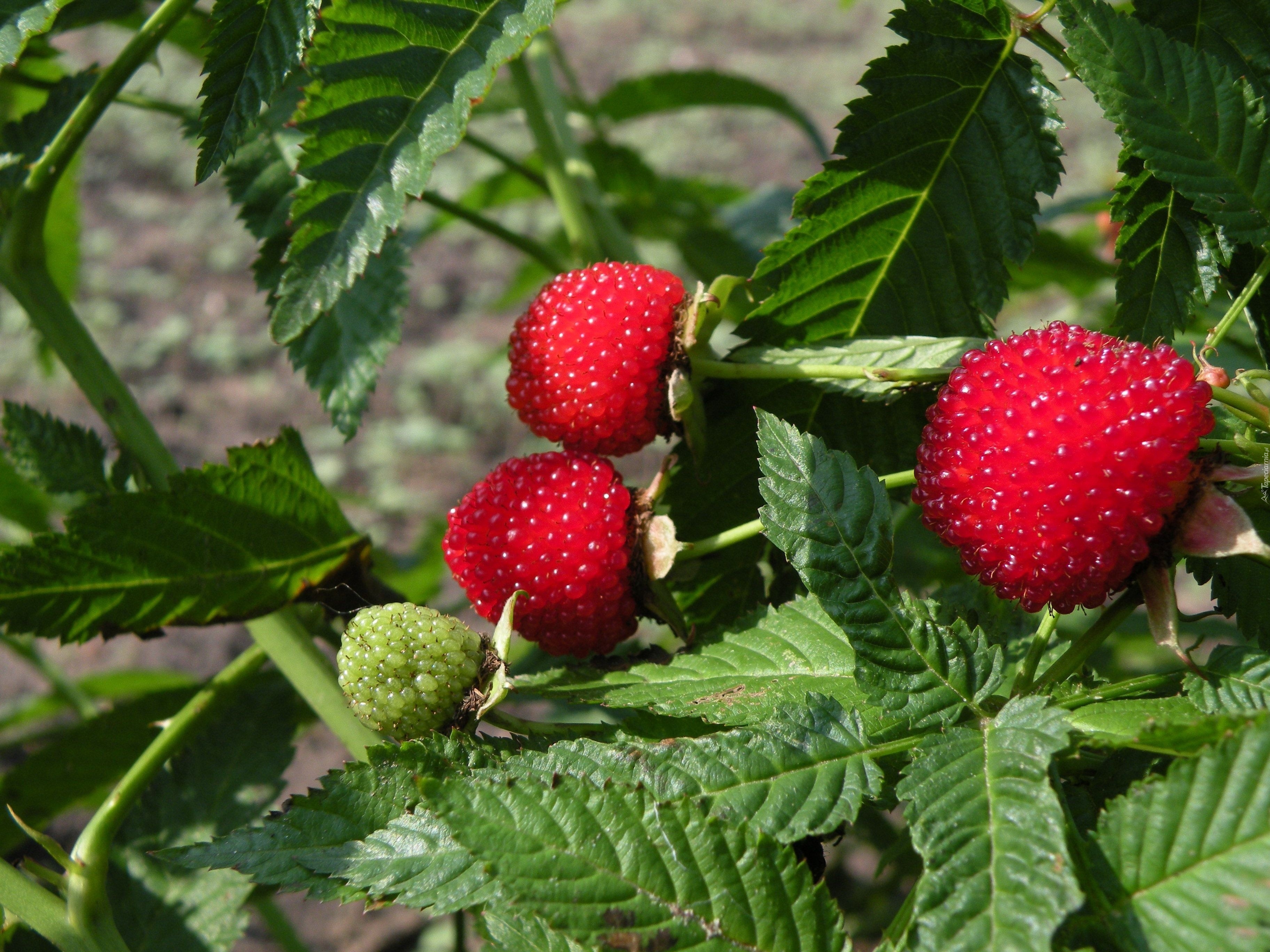 Edytor tapety: Krzaczek, Maliny, Zielone, Listki