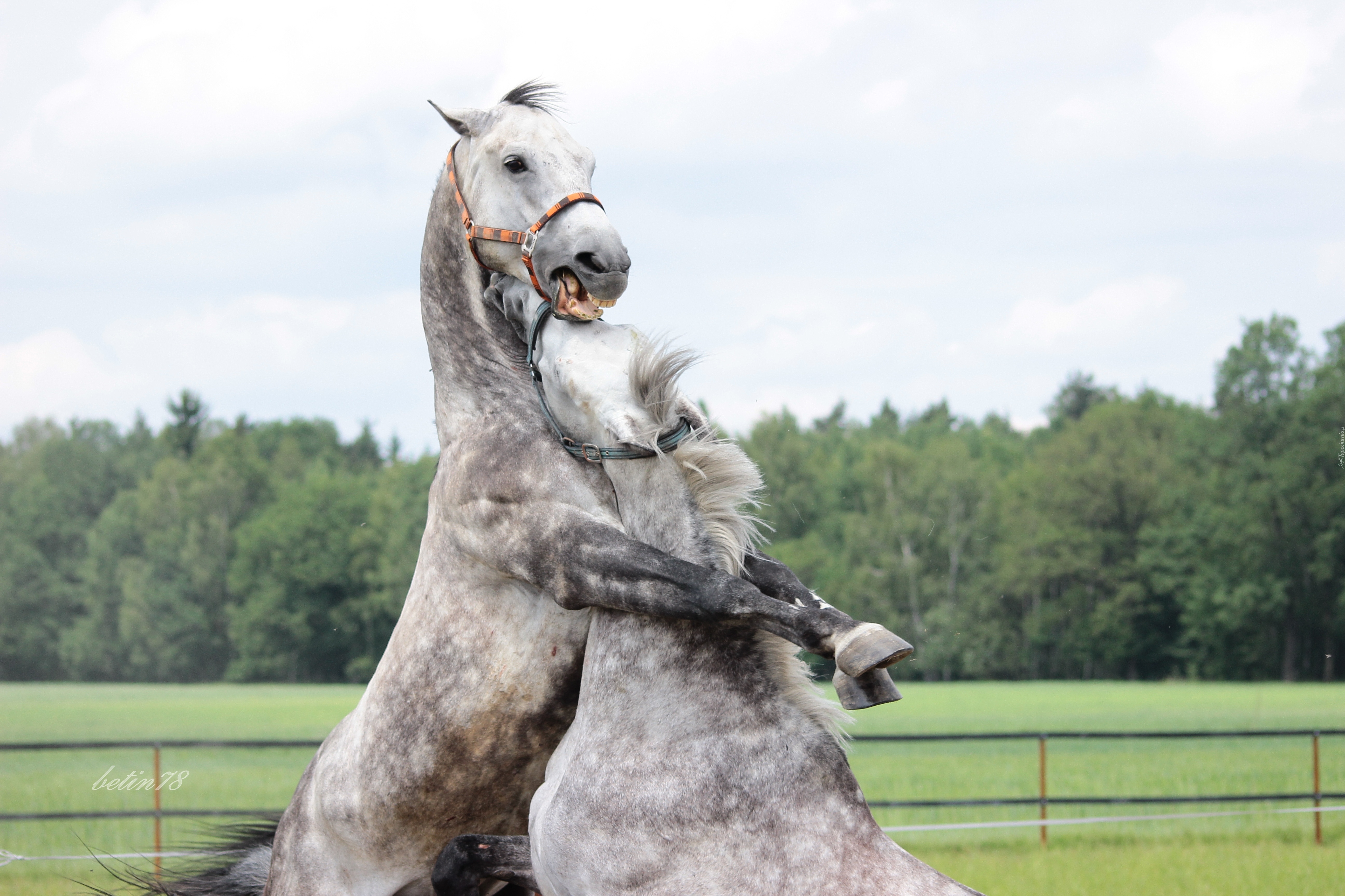 Edytor tapety: Konie, Siwe, Walka, Pastwisko
