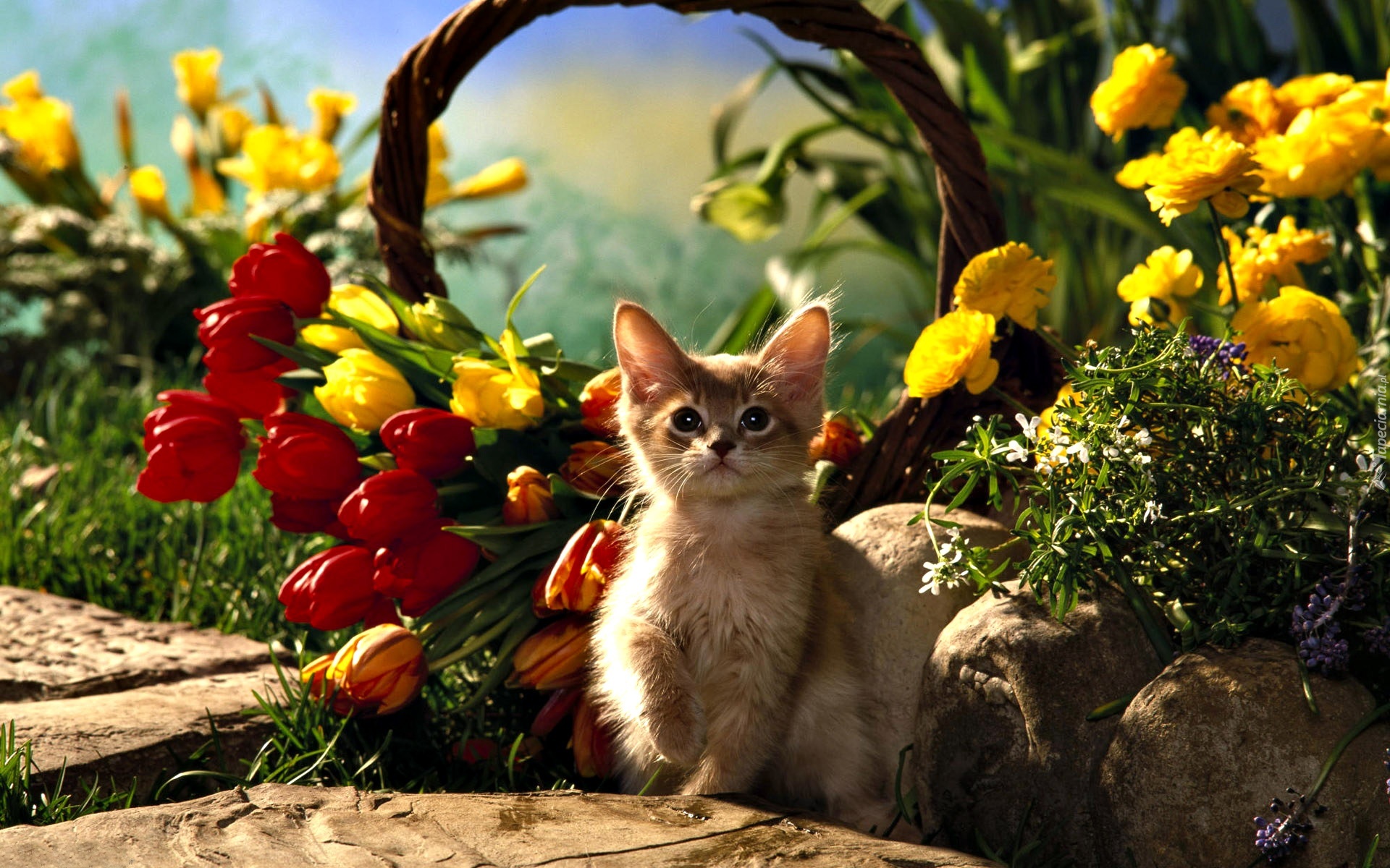 Edytor tapety: Kot, Kwiaty