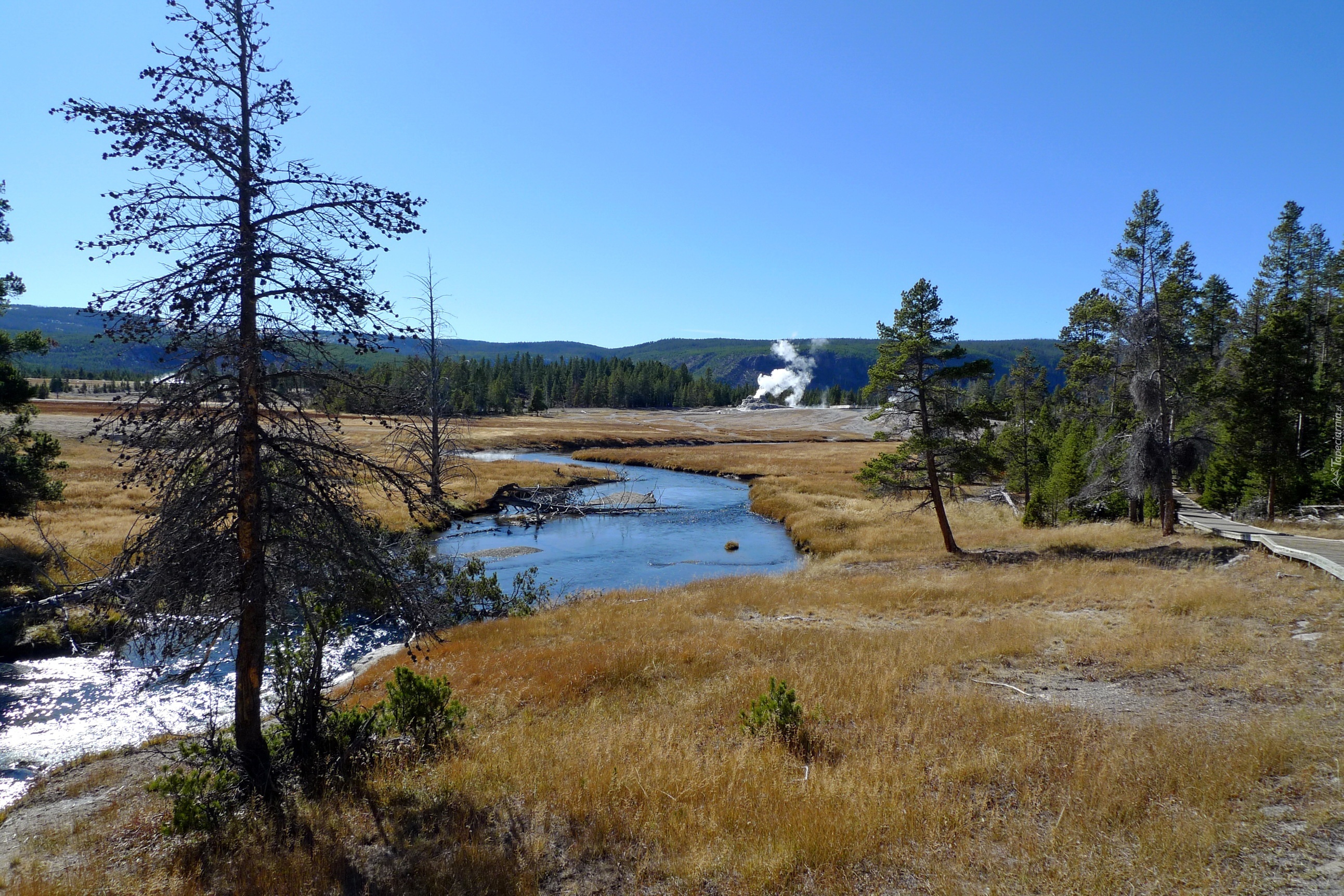 Edytor tapety: Rzeka, Łąka, Góry, Las