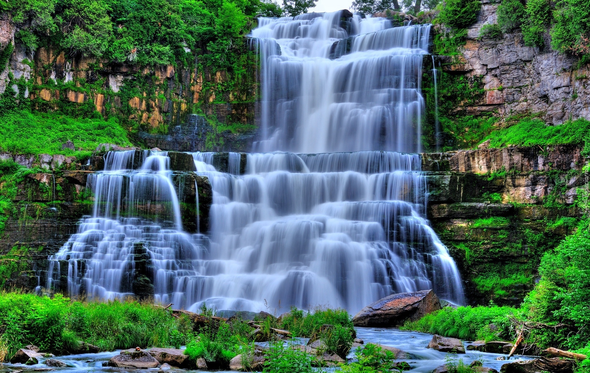 Edytor tapety: Wodospad, Skały, Roślinność