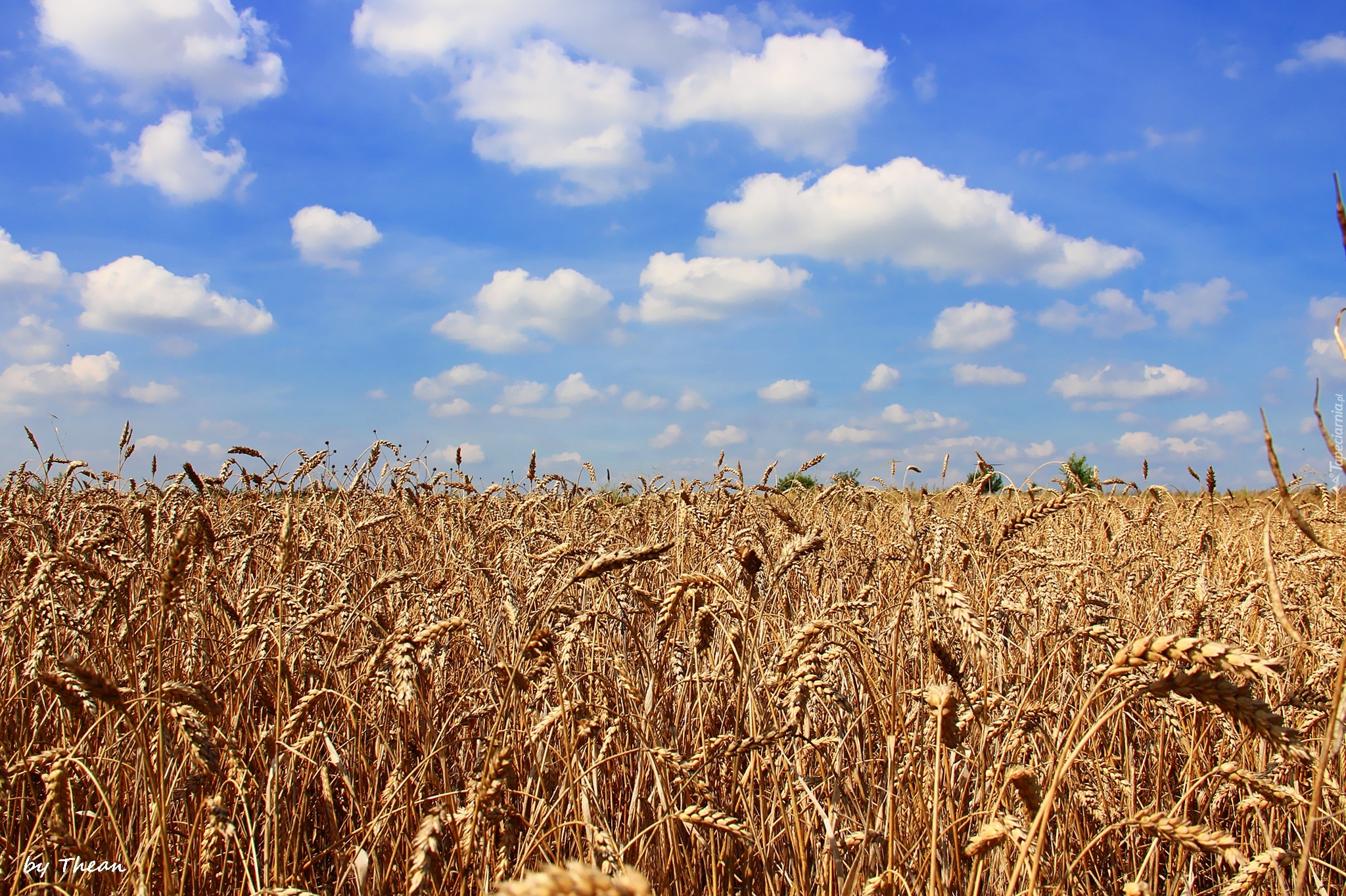 Edytor tapety: Zboże, Pole, Błękitne, Niebo, Chmury