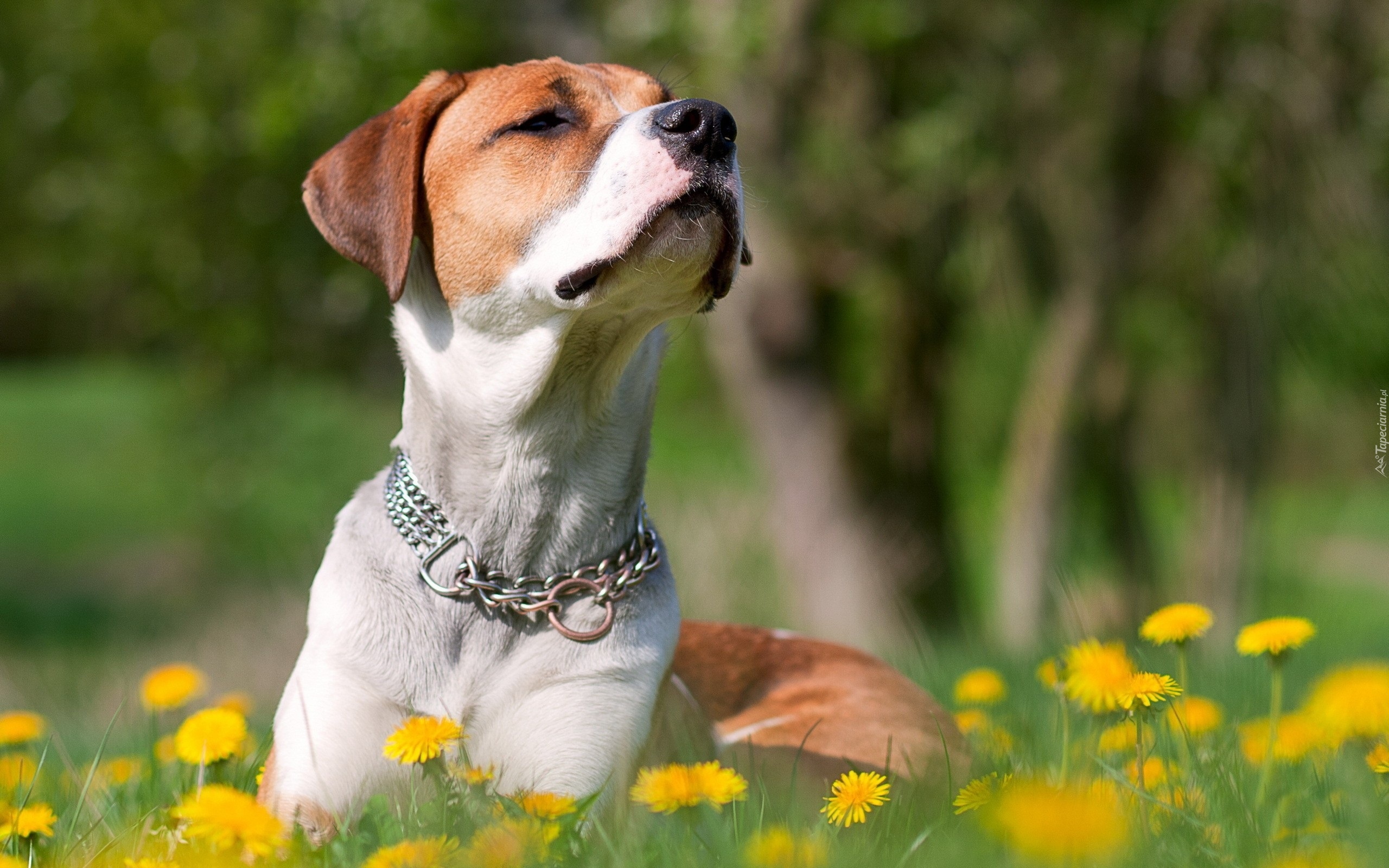Edytor tapety: Biało, Rudy, Pies, Łąka, Żółte, Mlecze