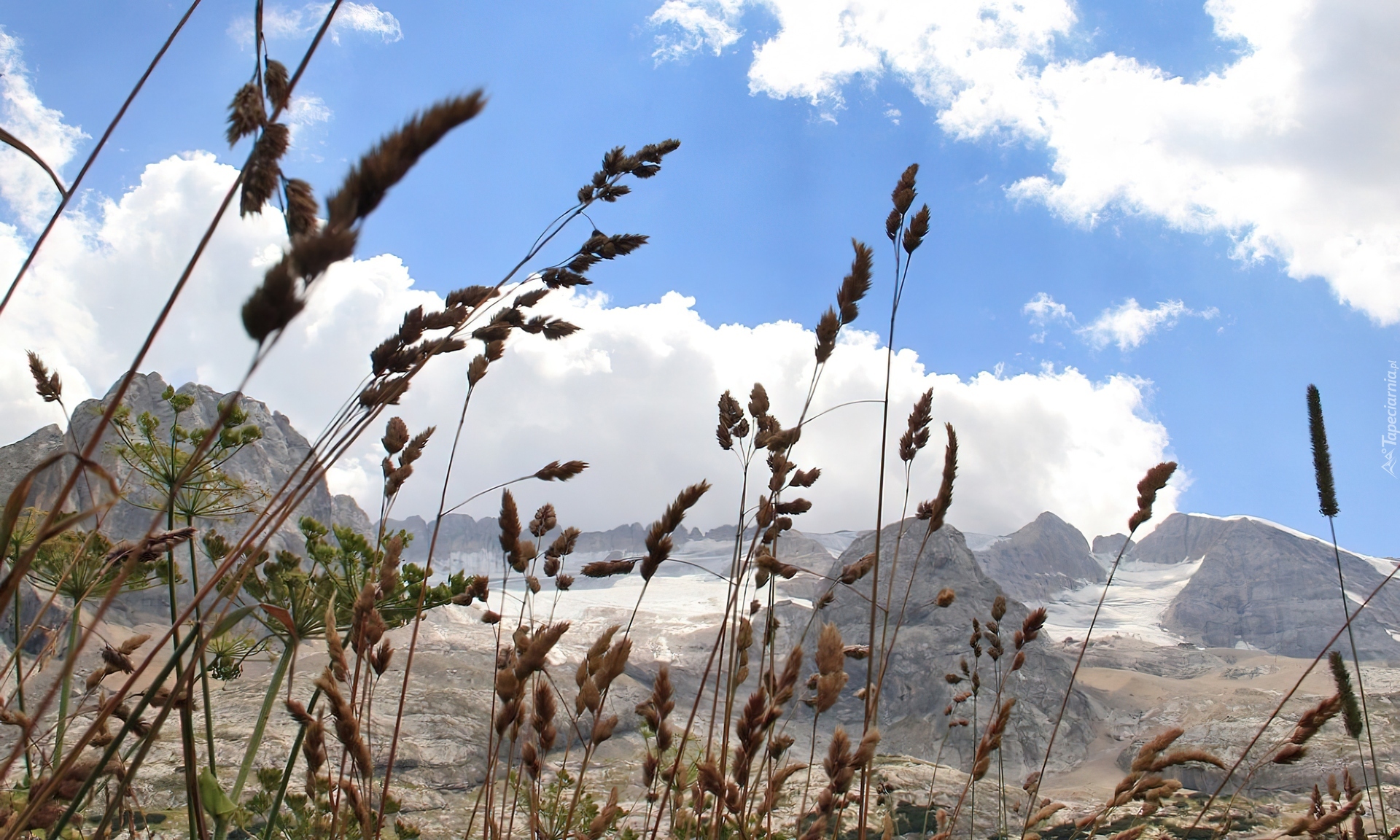 Edytor tapety: Góry, Chmury, Kłosy, Trawy
