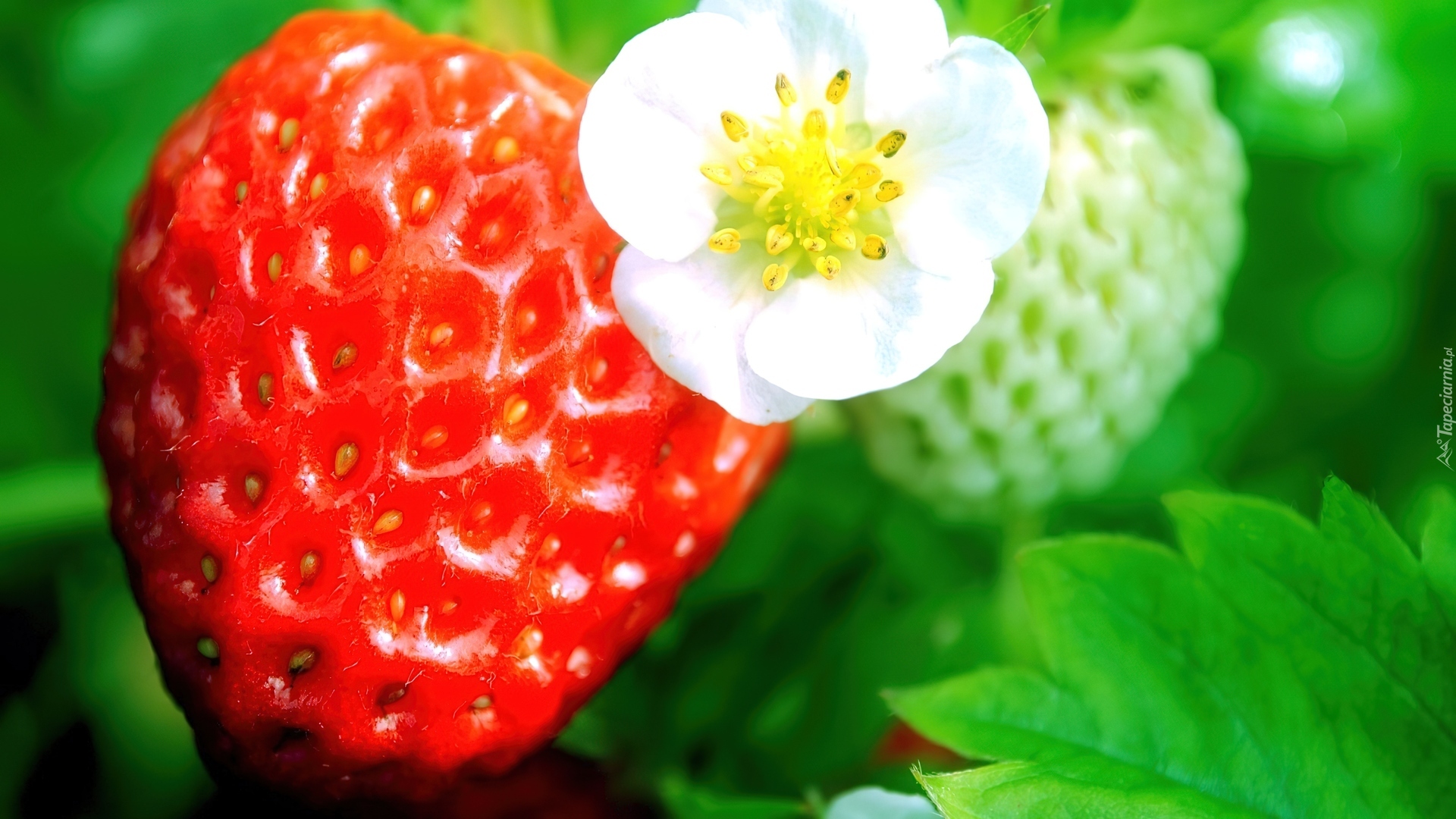 Edytor tapety: Truskawka, Kwiatek, Listki