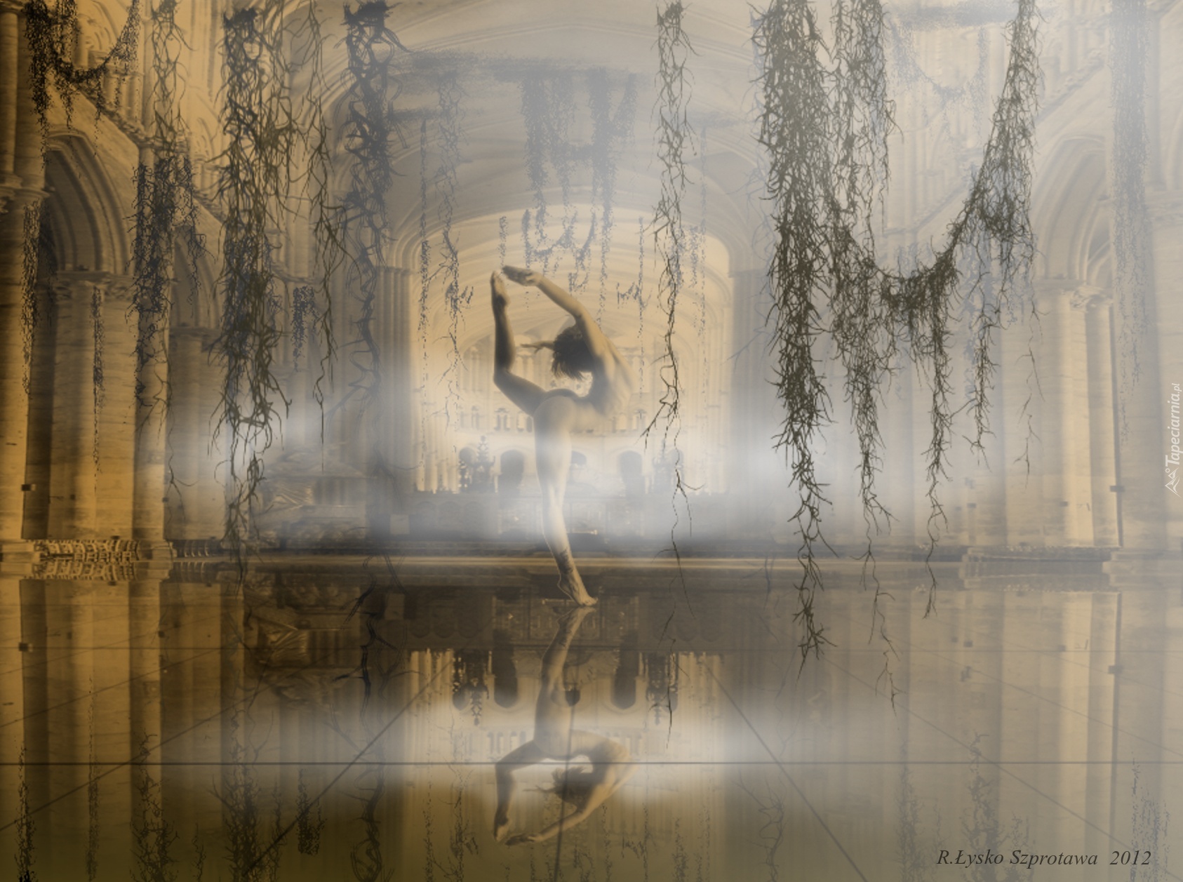 Edytor tapety: Kobieta, Balet, Pnącza, Mgła