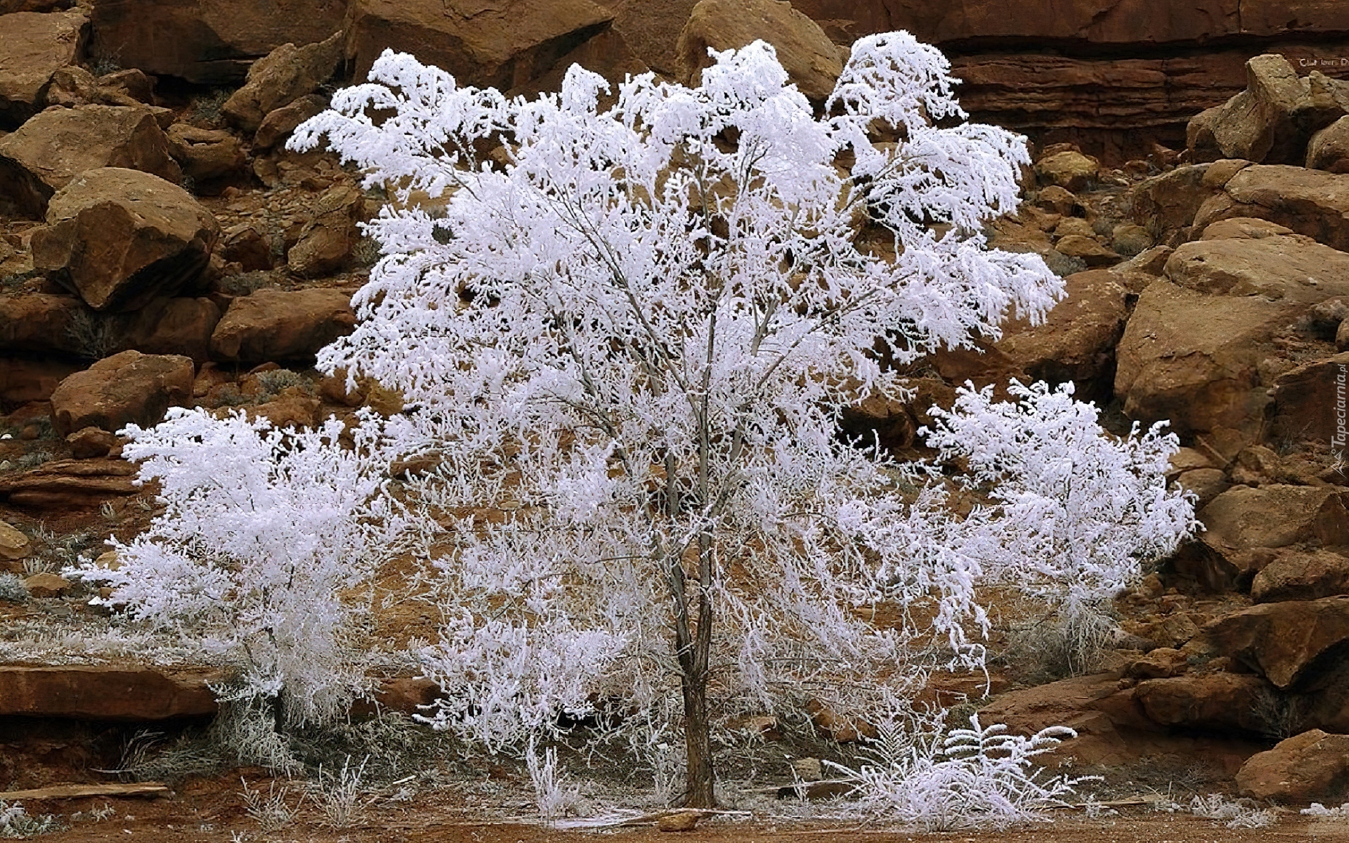 Edytor tapety: Białe, Drzewo, Skały, Kamienie