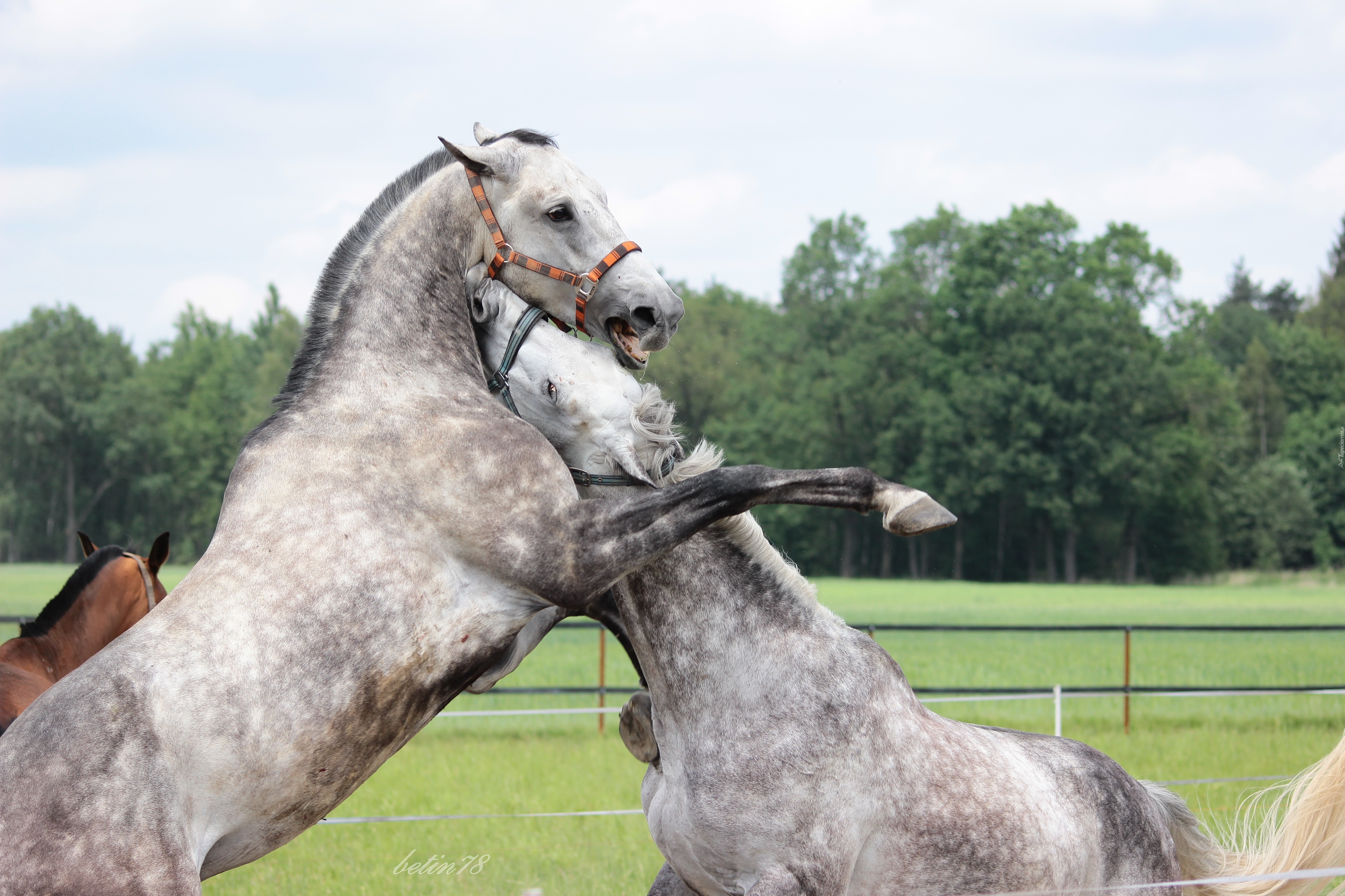 Edytor tapety: Konie, Siwe, Walka, Pastwisko