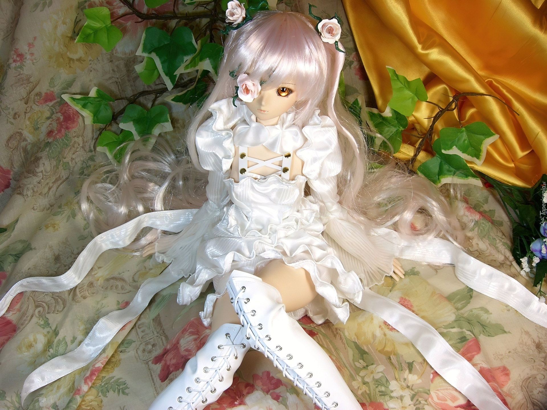 Edytor tapety: Dziewczyna, Przedziwny, Strój, Kwiaty, Liście
