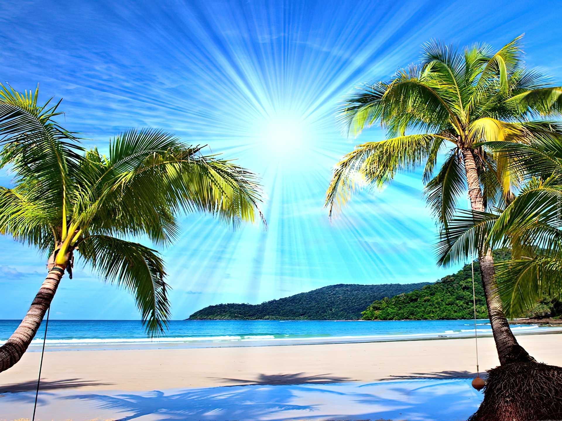 Edytor tapety: Morze, Palmy, Promienie, Słoneczne