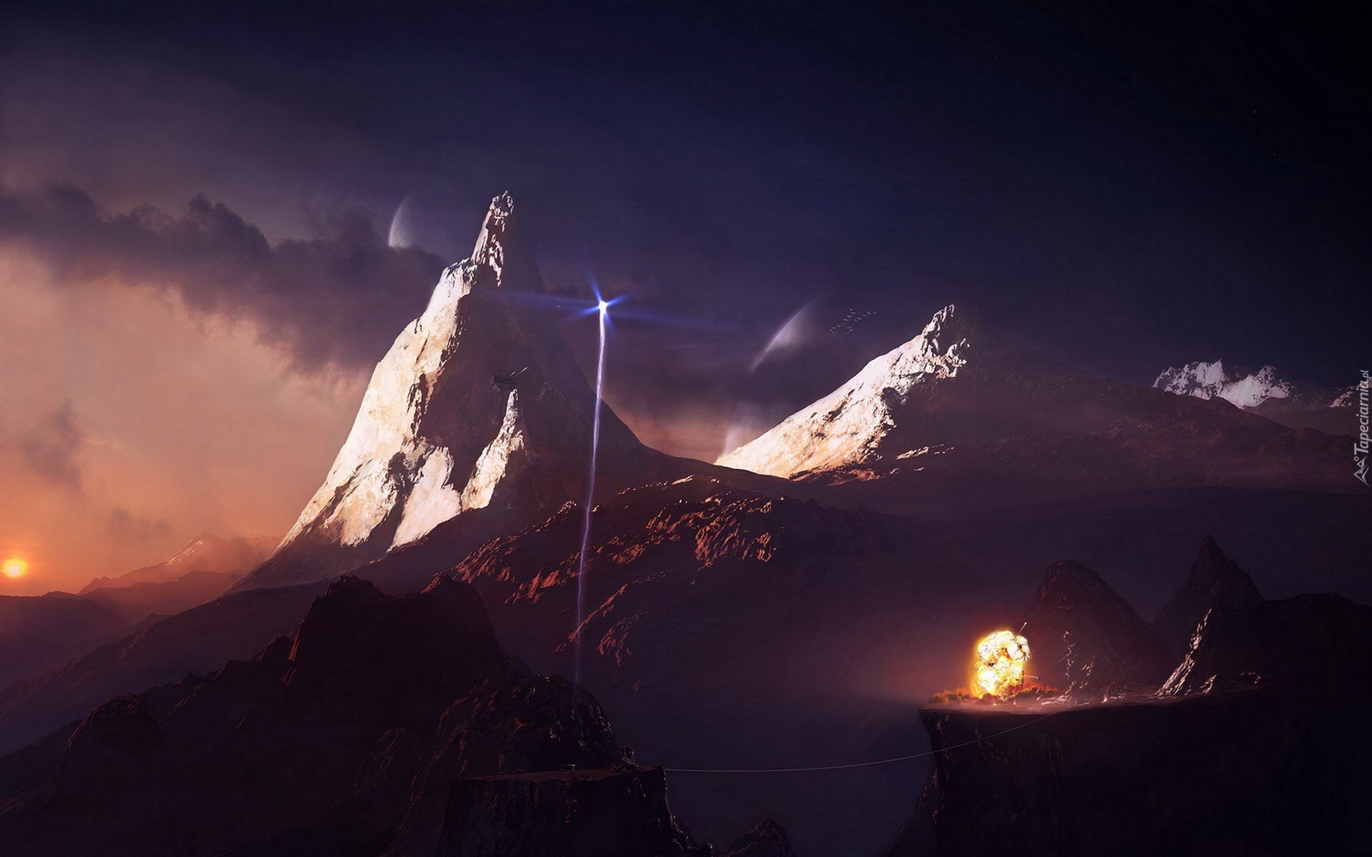 Edytor tapety: Góry, Wysokość, Śnieg, Ogień, Słońce