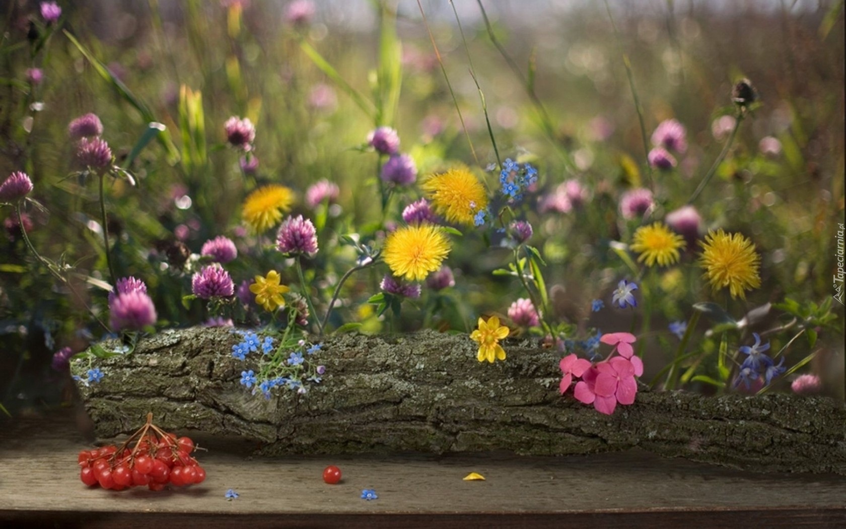 Edytor tapety: Pień, Drzewa, Polne, Kwiaty