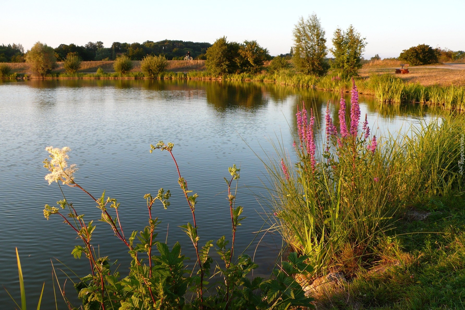 Edytor tapety: Jezioro, Zarośla, Trawy