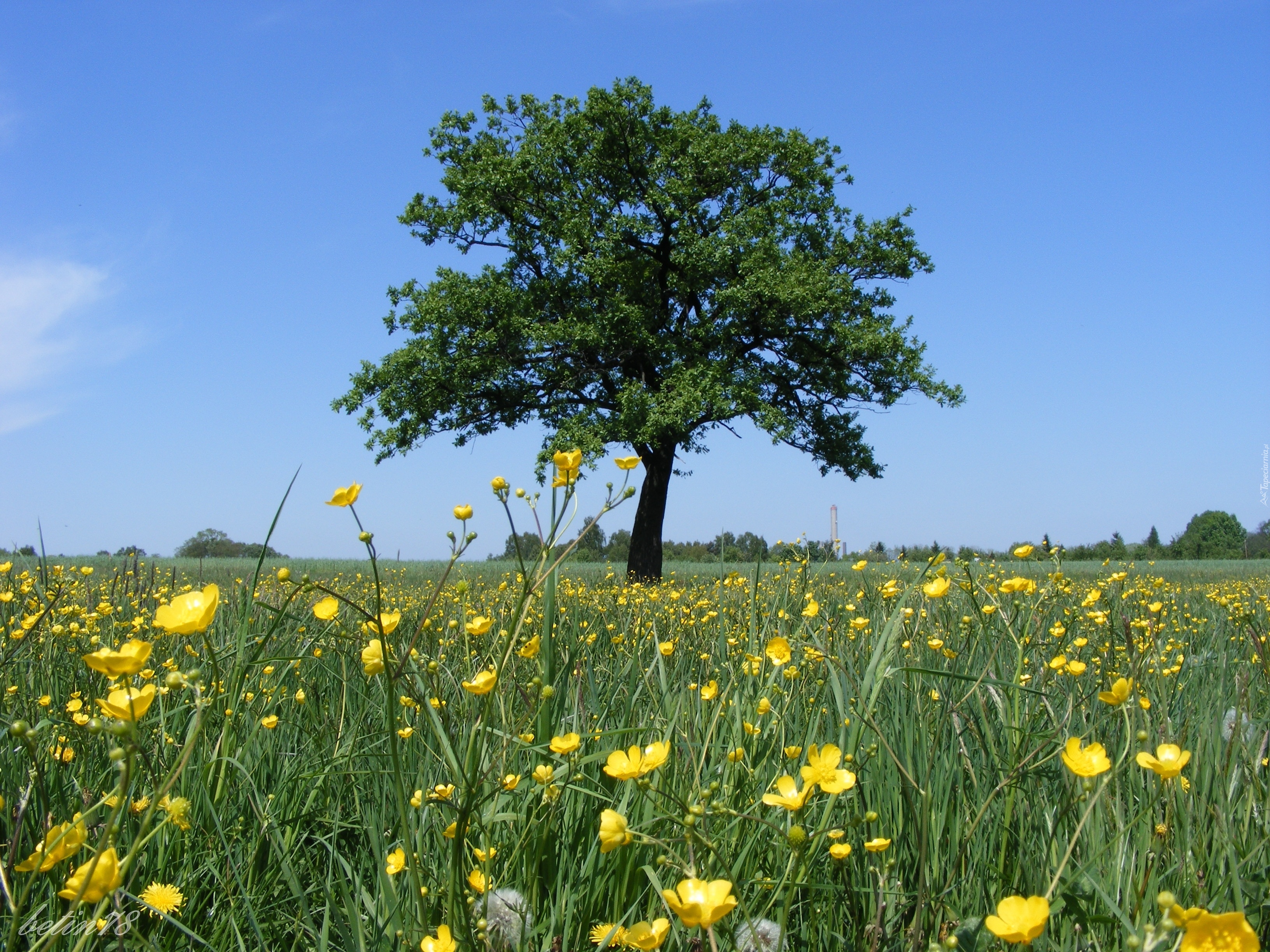 Edytor tapety: Krajobraz, Łąka, Drzewo, Kwiaty, Lato