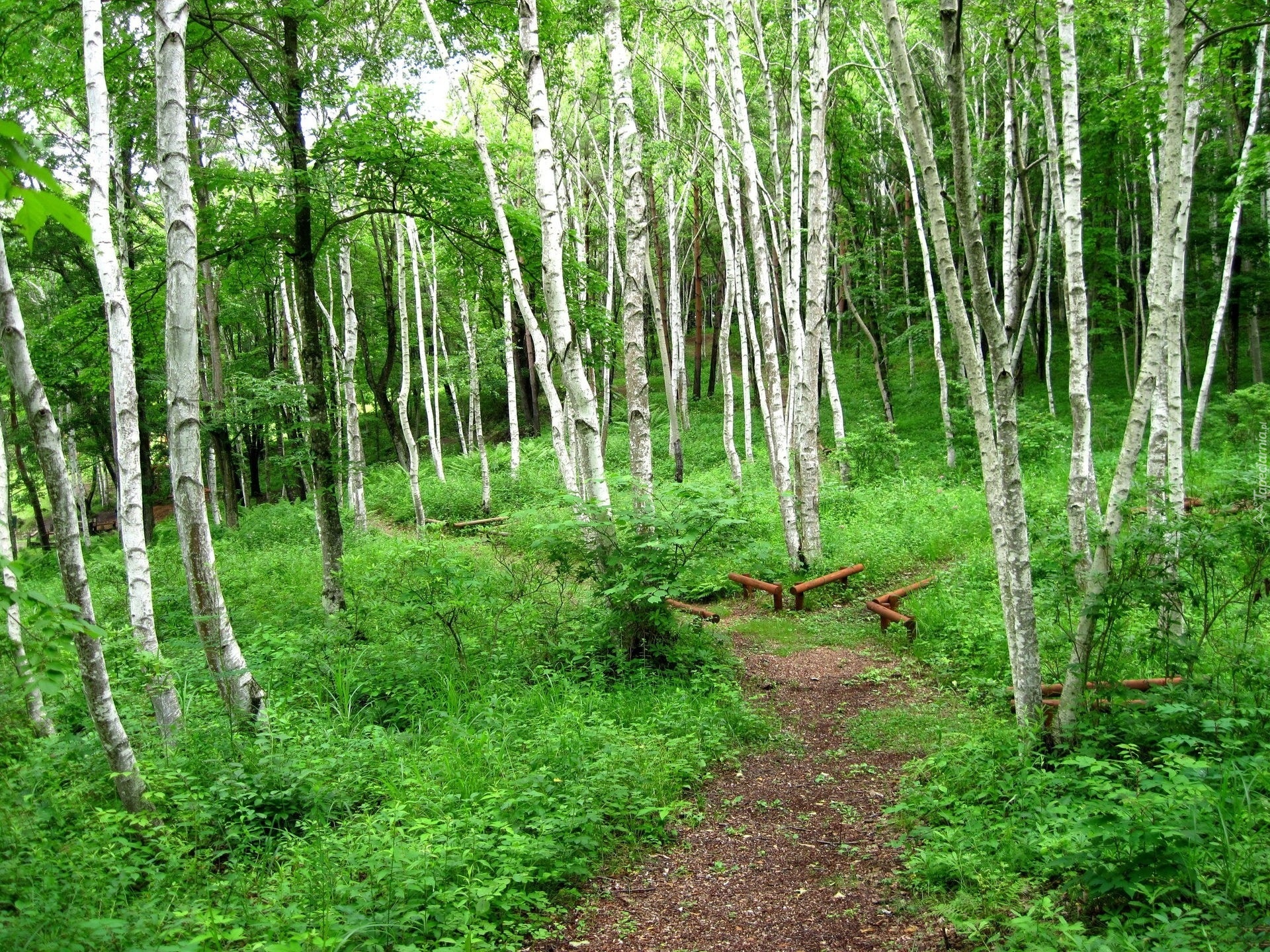 Edytor tapety: Brzozowy, Lasek, Dróżka, Zieleń