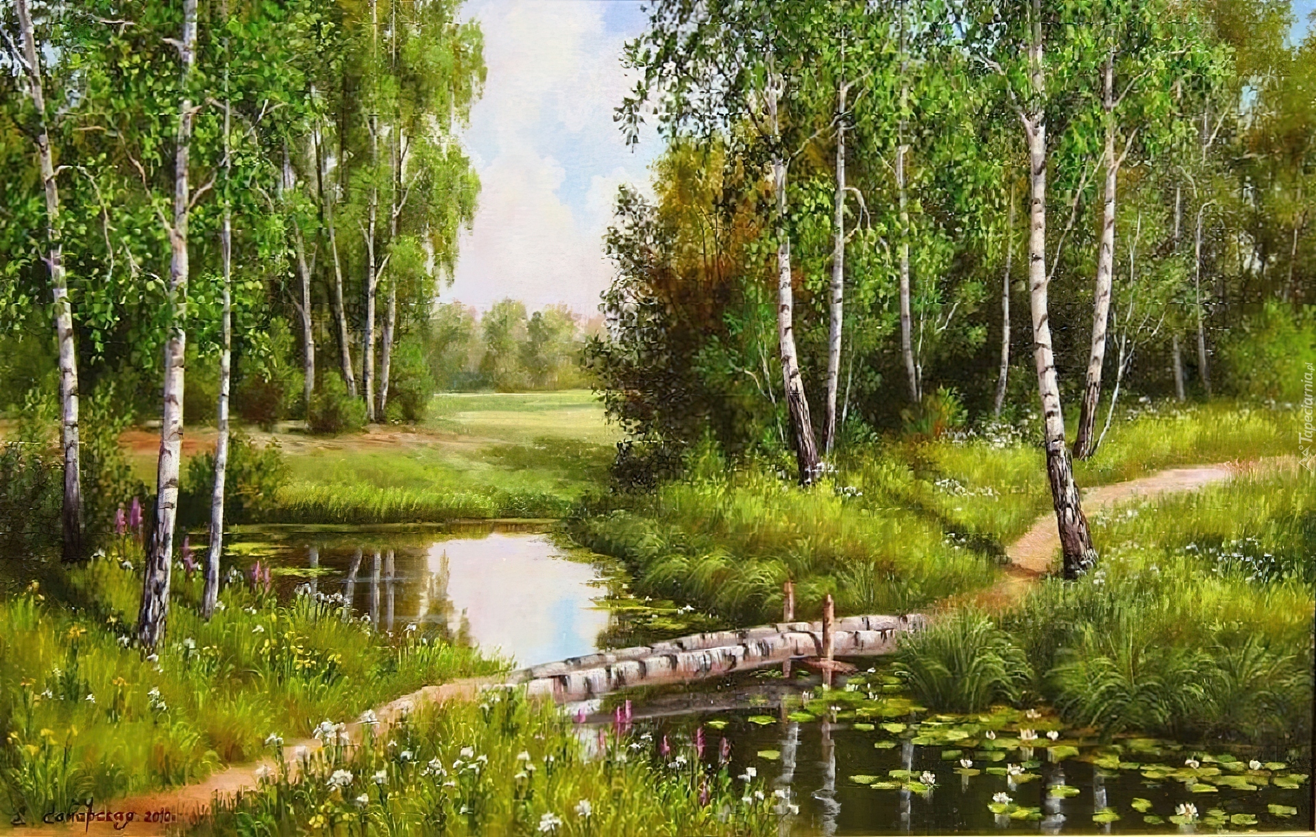 Edytor tapety: Las, Brzozowy, Strumyk, Widok, Obraz