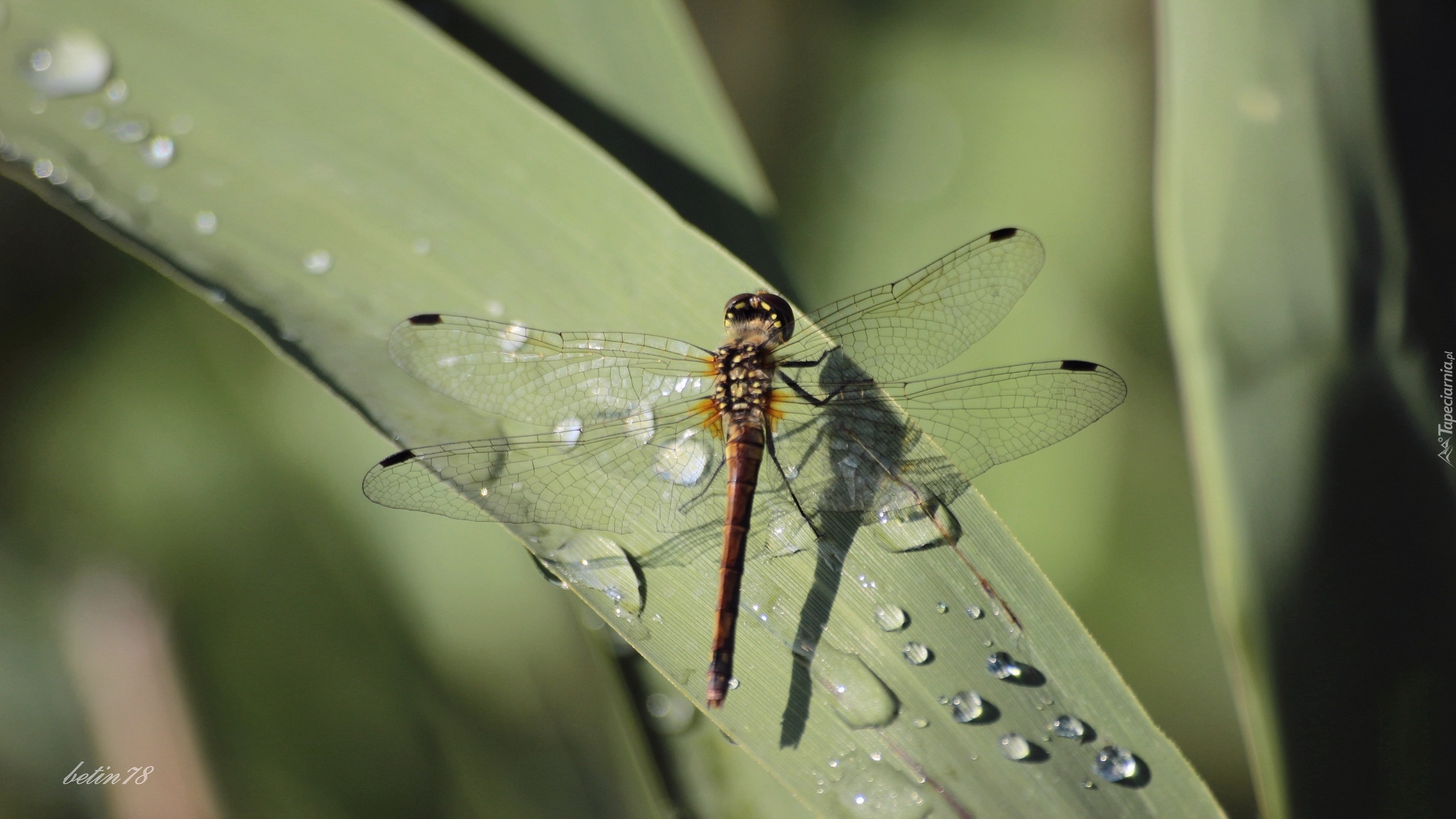 Edytor tapety: Ważka, Liście, Rosa