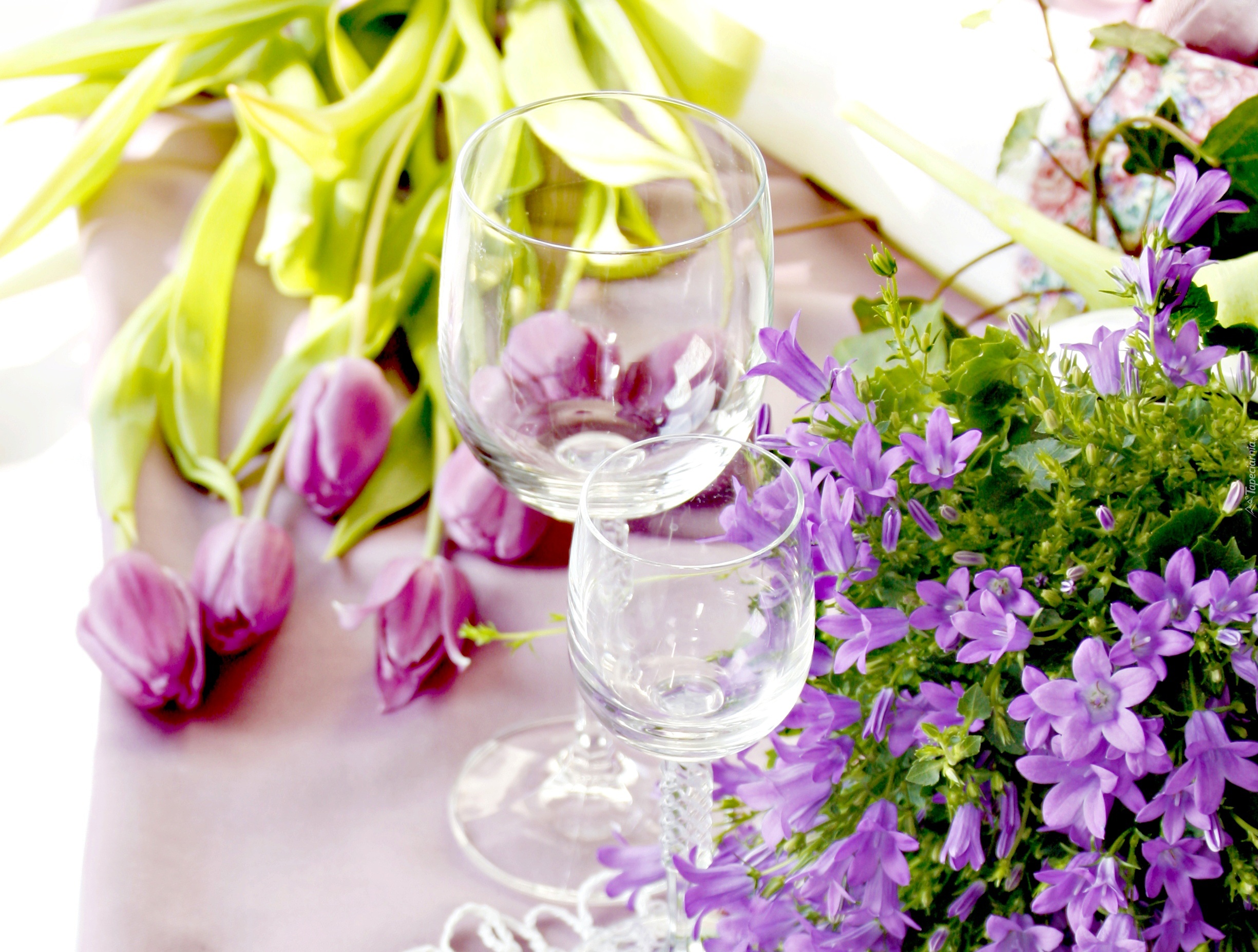 Edytor tapety: Fioletowe, Kwiaty, Tulipany, Kieliszki