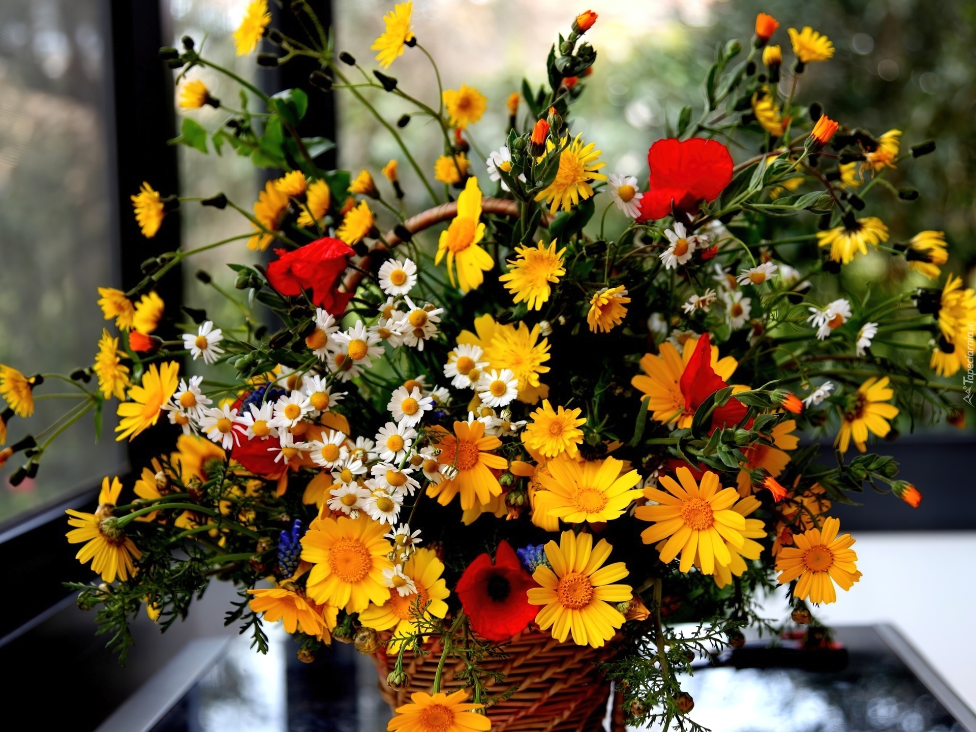 Edytor tapety: Bukiet, Polnych, Kwiatów, Wiklinowy, Koszyk