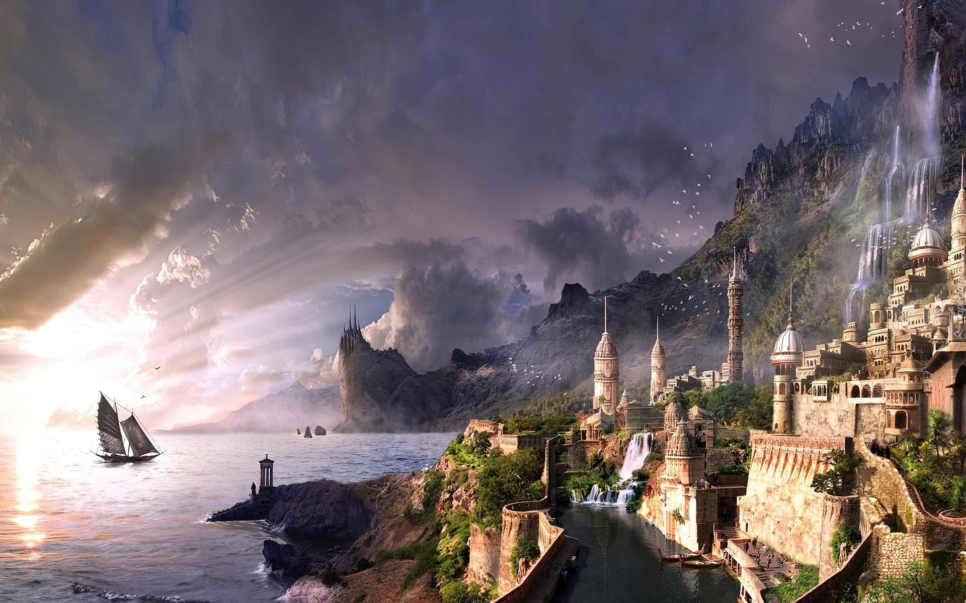 Edytor tapety: Narnia, Przebijające, Światło, Miasto, Statek