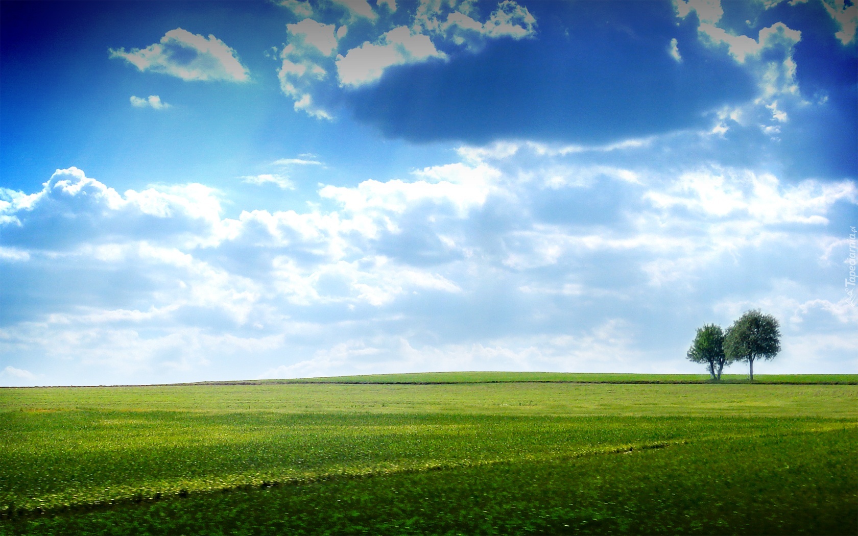 Edytor tapety: Łąka, Chmury, Drzewa