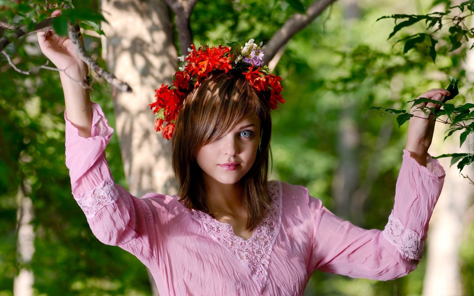 Edytor tapety: Piękna, Kobieta, Drzewa, Wianek