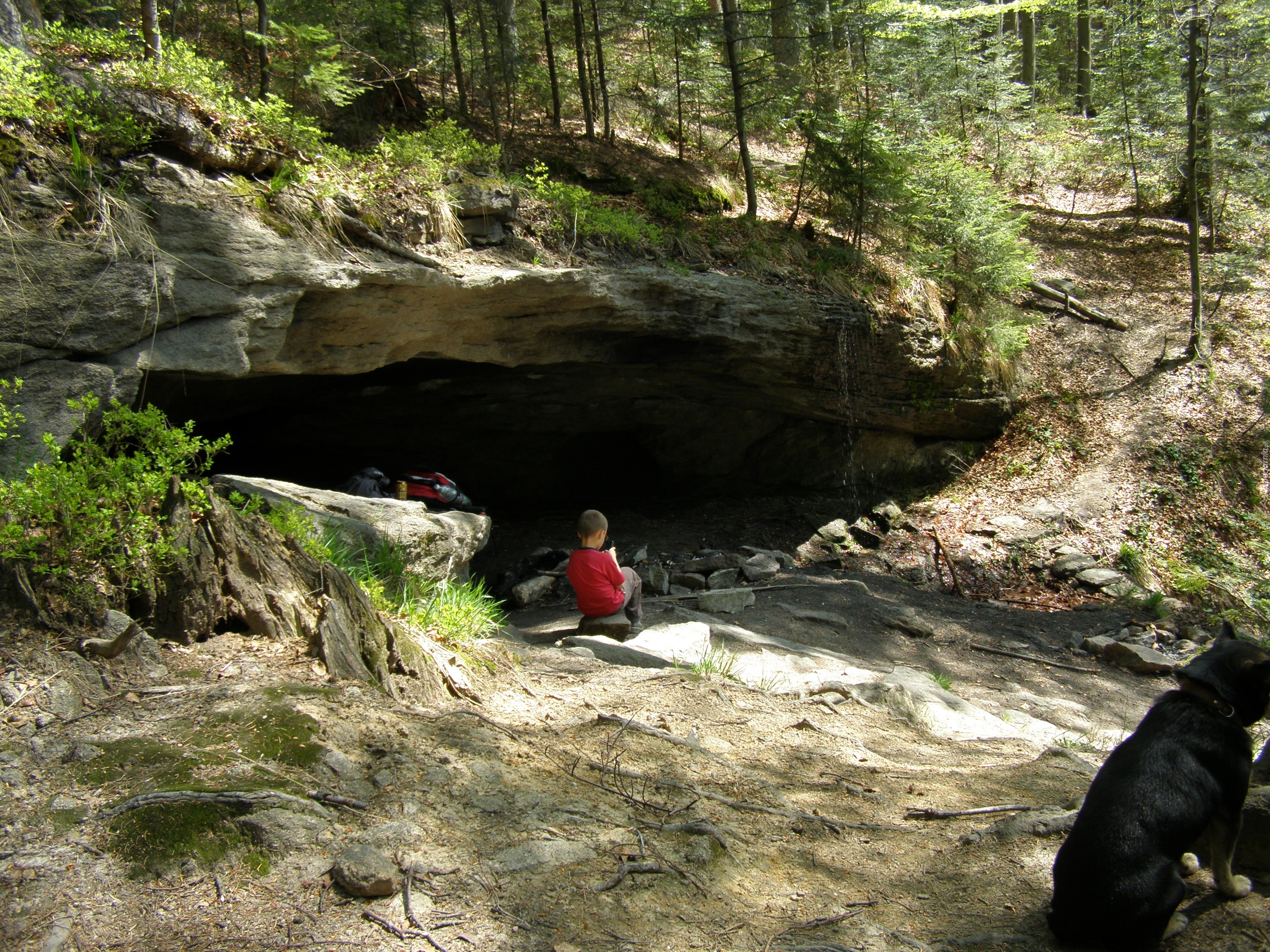 Edytor tapety: Drzewa, Grota, Kamienie, Chłopczyk, Piesek