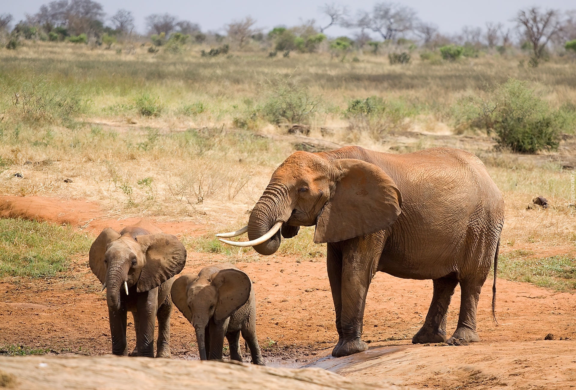 Edytor tapety: Słoń, Dwa, Małe, Ziemia, Trawa
