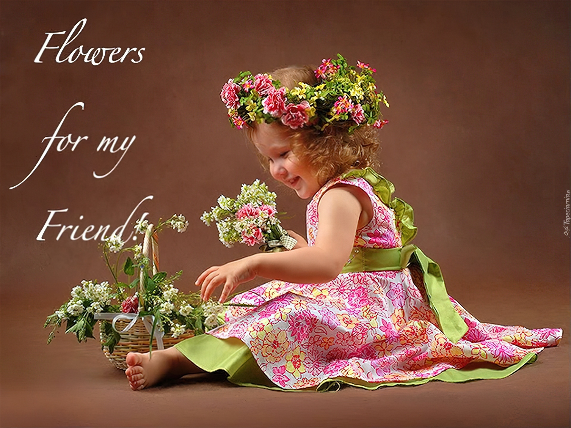 Edytor tapety: Mała, Dziewczynka, Wianek, Kwiaty