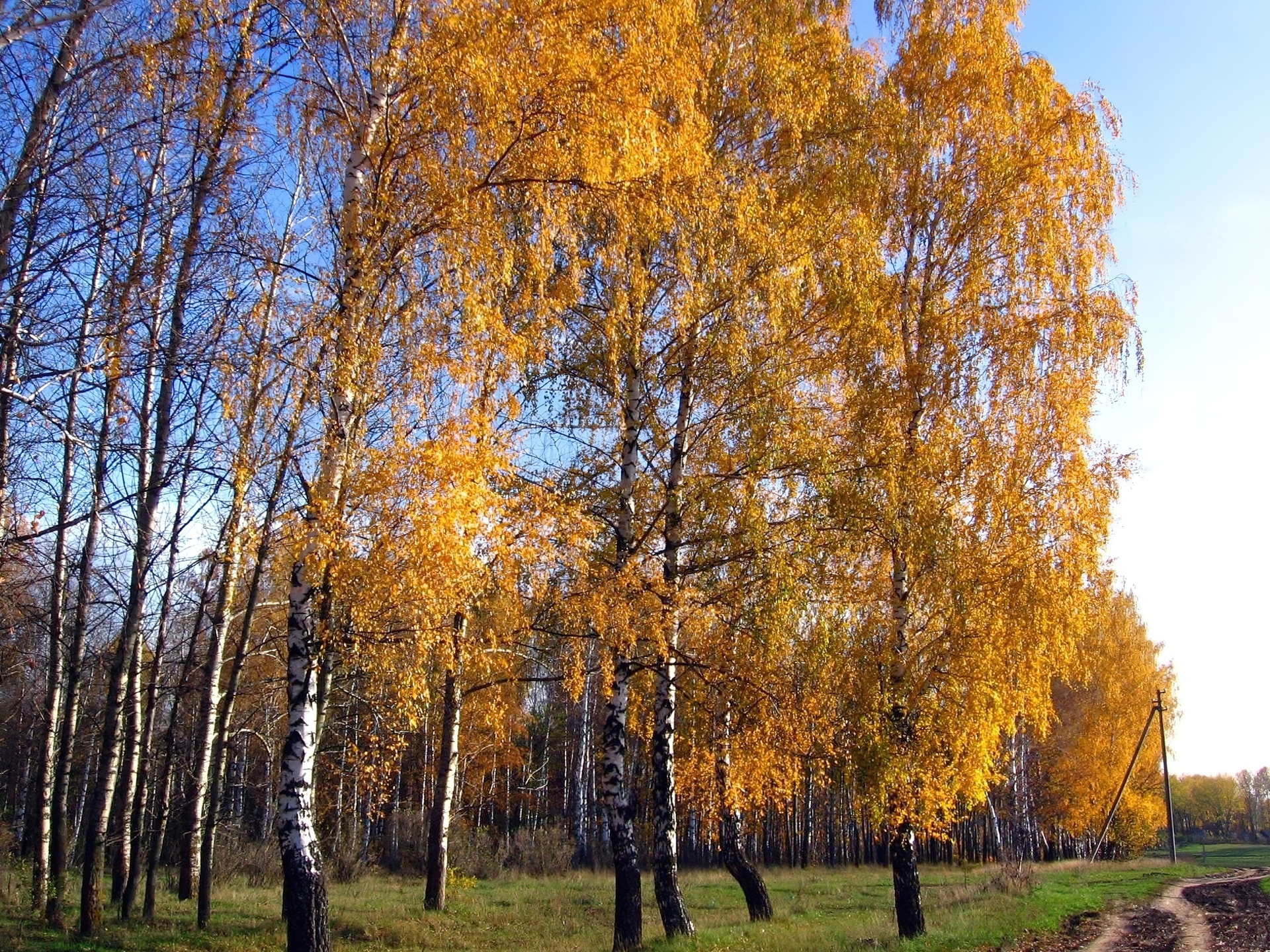 Edytor tapety: Droga, Las, Drzewa, Brzozy