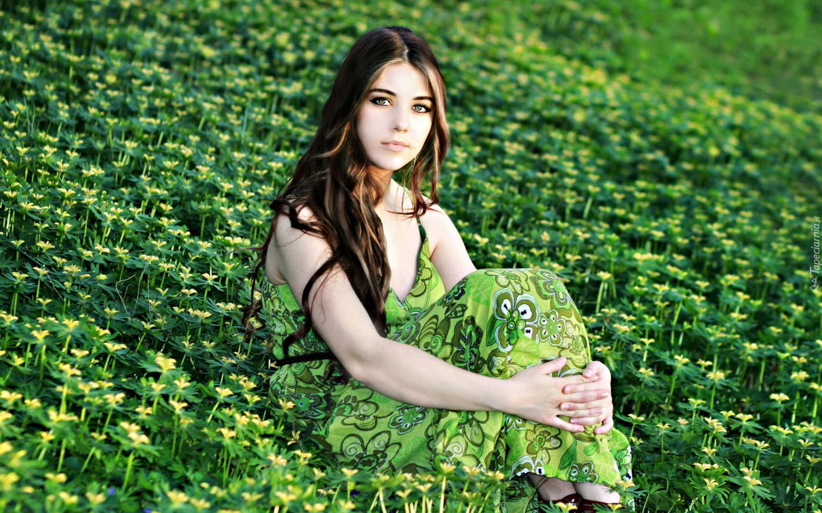 Edytor tapety: Kobieta, Łąka, Kwiaty