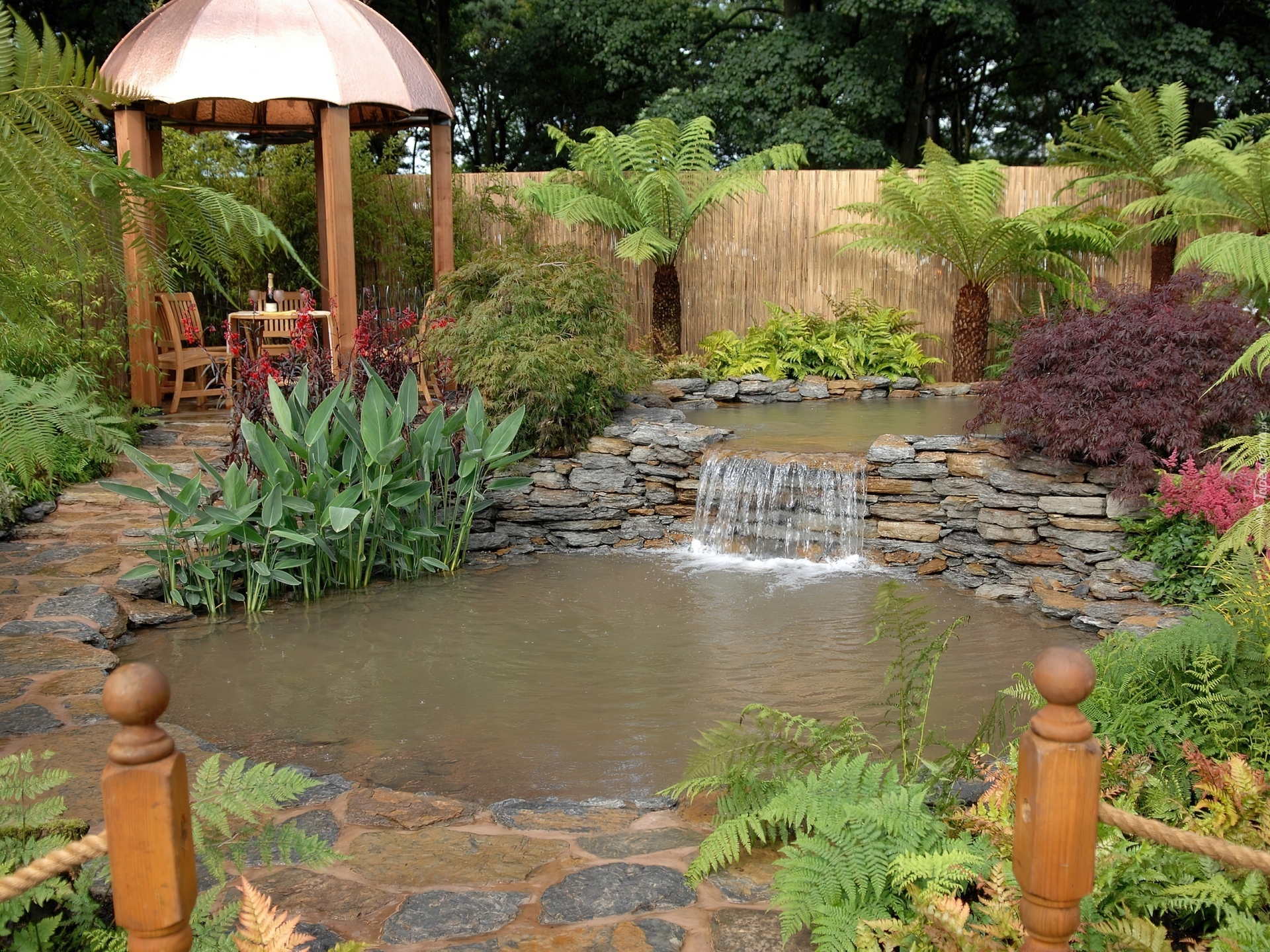Edytor tapety: Ogród, Altanka, Kaskada, Rośliny