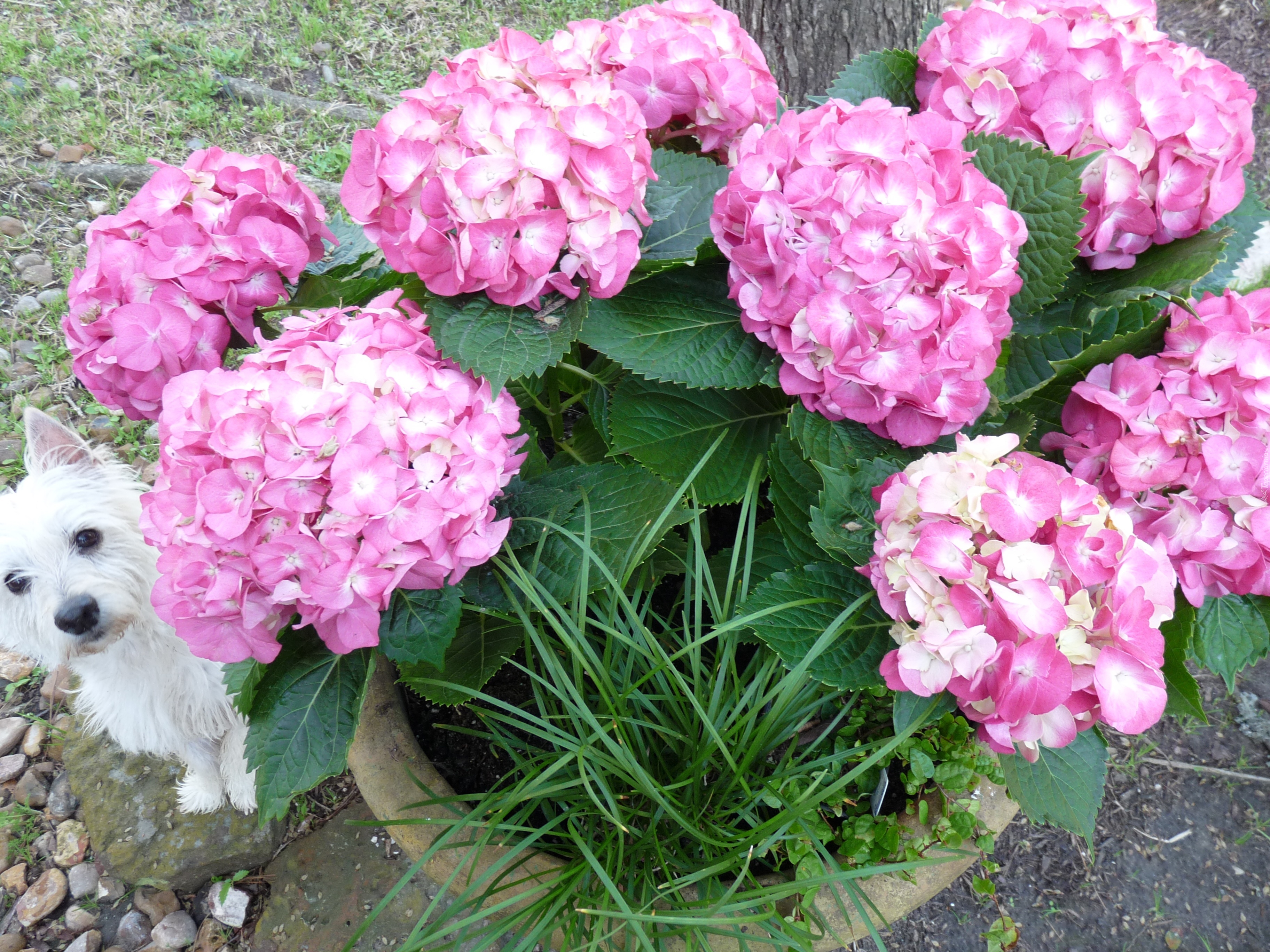 Edytor tapety: Różowa, Hortensja, Ukryty, Mały, Piesek