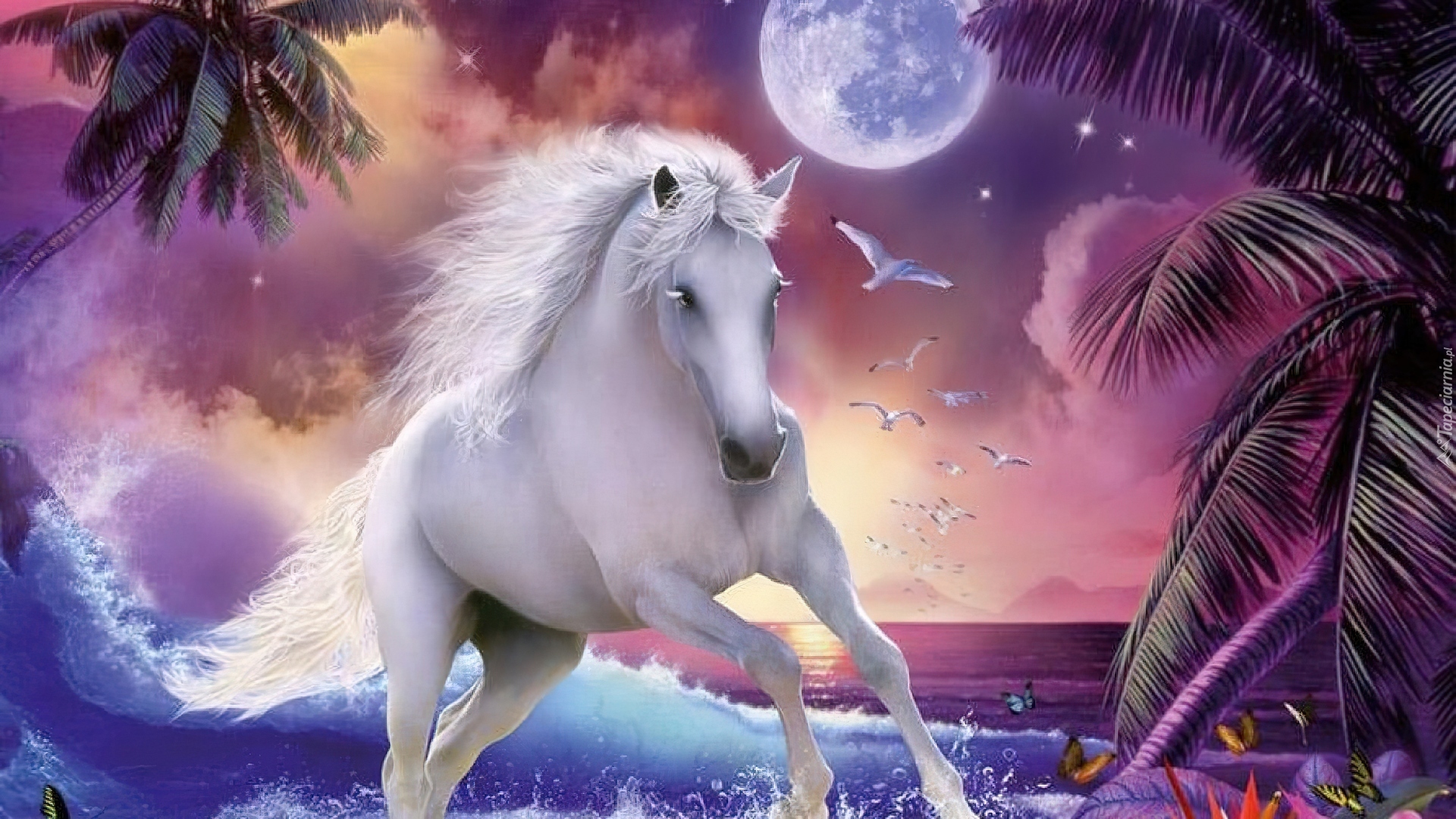 Edytor tapety: Koń, Woda, Księżyc