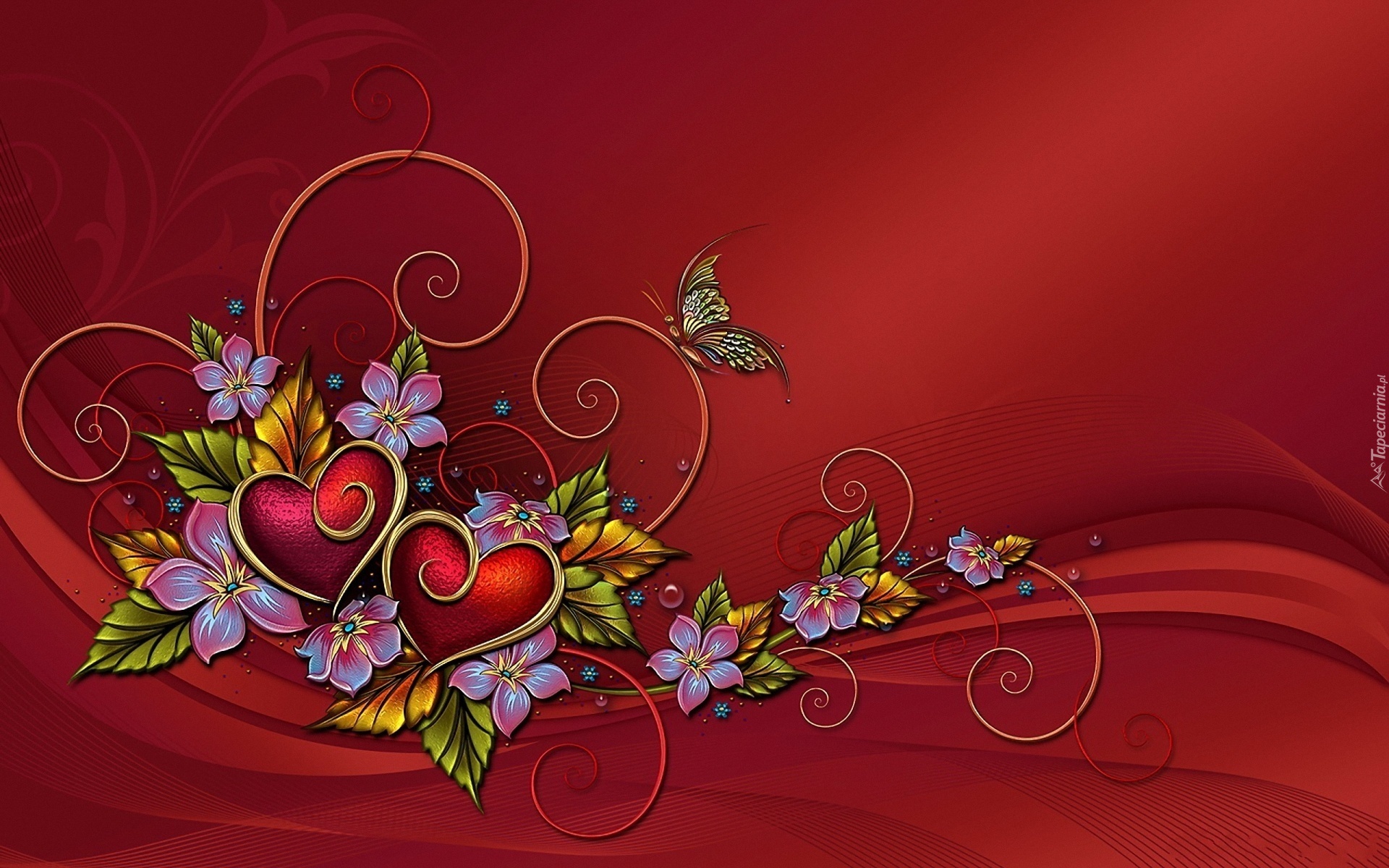 Edytor tapety: Grafika, Kwiaty, Serduszka