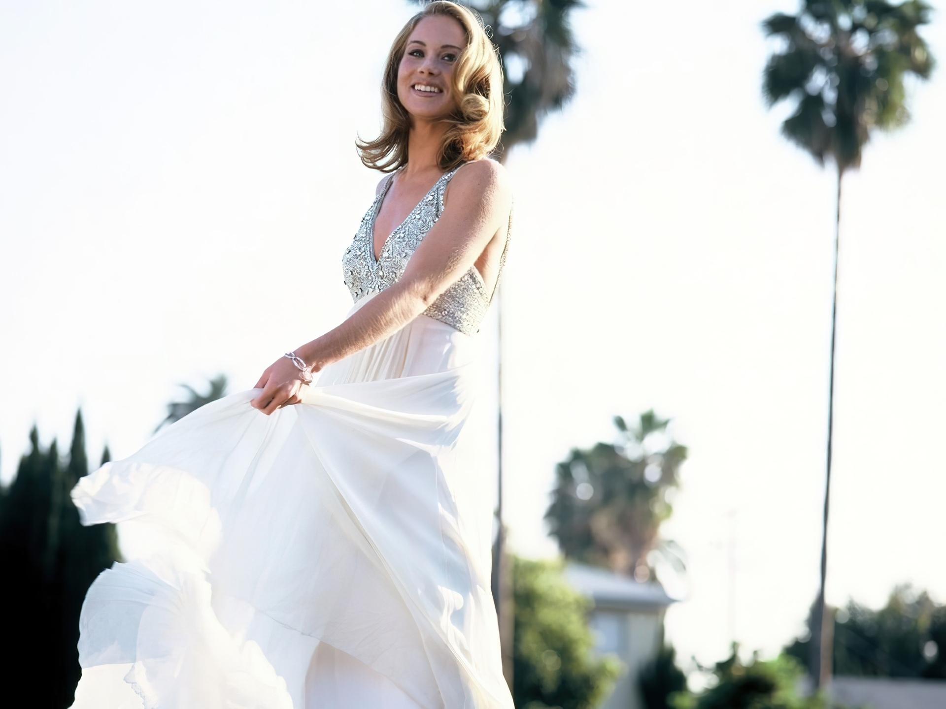 Edytor tapety: Christina Applegate, biała Suknia, Panna młoda