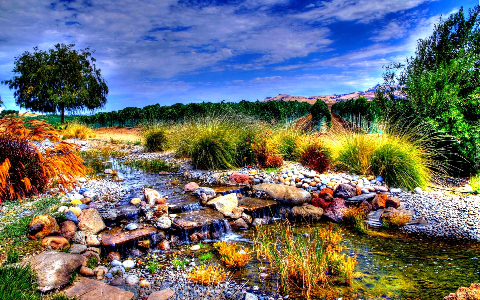 Edytor tapety: Niebo, Drzewa, Woda, Kamienie